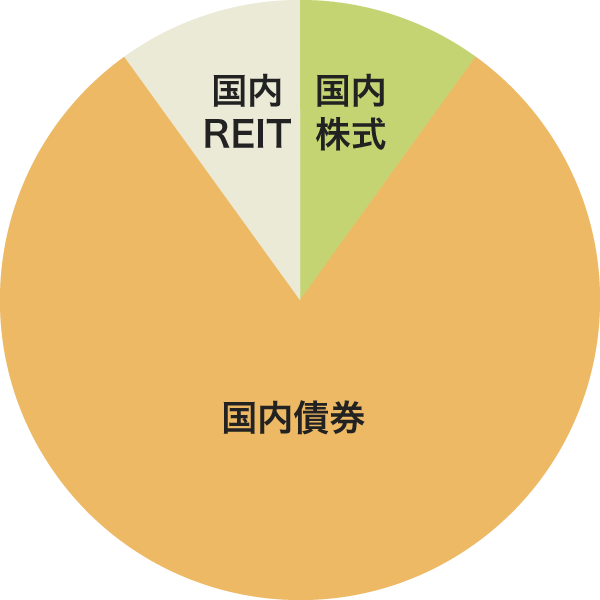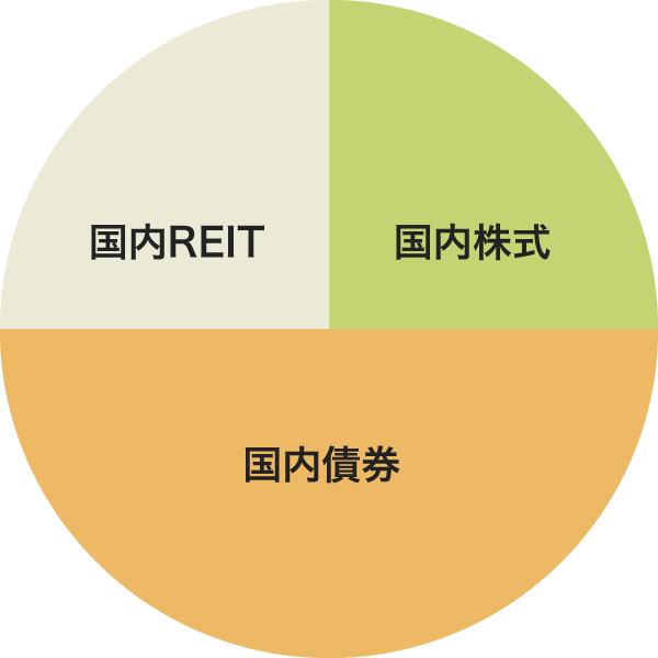 相対的に価格の変動が小さく、安全資産とされる「国内債券」を中心に、リスク・リターンが低めな国内資産に分散投資するポートフォリオ