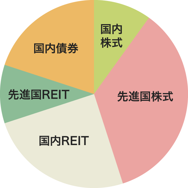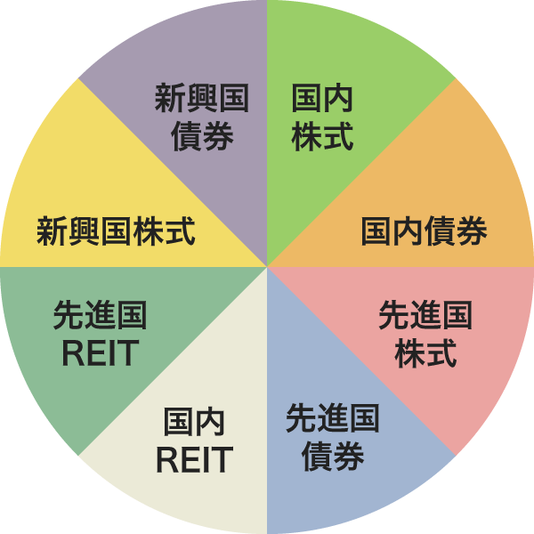 さまざまな資産に同程度分散投資することで、値動きを抑えつつ、幅広く収益獲得の機会をうかがうポートフォリオ