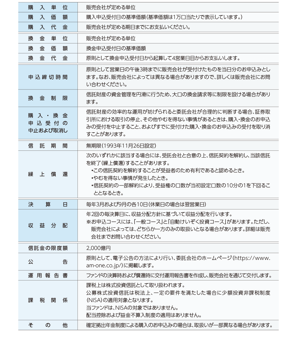 ファンド概要についての注意