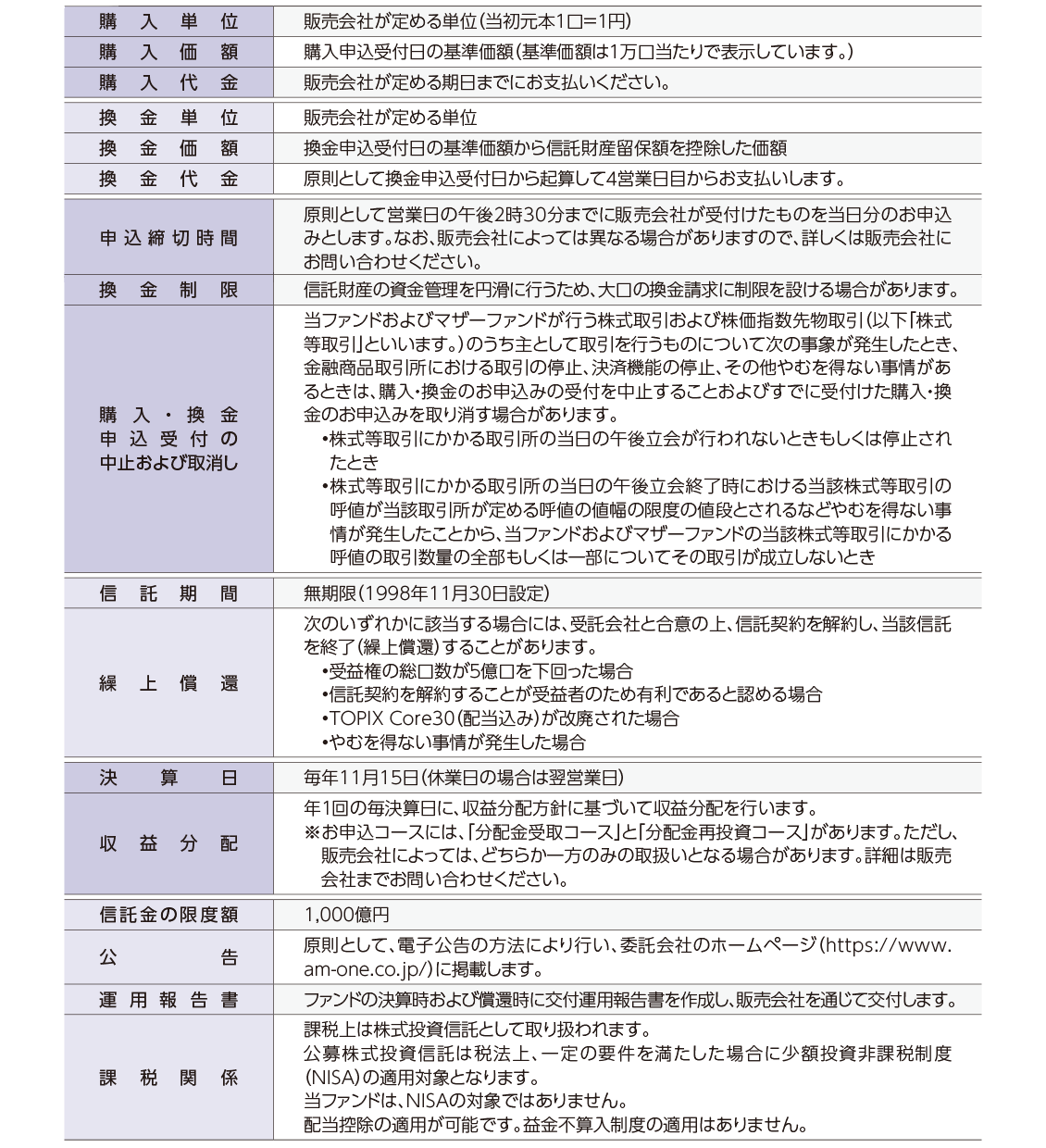 運用状況によっては、分配金額が変わる場合、あるいは分配金が支払われない場合があります。投資信託は、預金等や保険契約ではありません。また、預金保険機構および保険契約者保護機構の保護の対象ではありません。加えて証券会社を通して購入していない場合には投資者保護基金の対象にもなりません。購入金額については元本保証および利回り保証のいずれもありません。投資した資産の価値が減少して購入金額を下回る場合がありますが、これによる損失は購入者が負担することとなります。