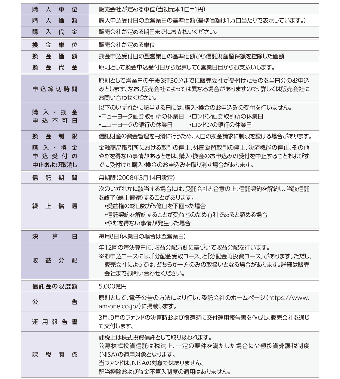 ファンド概要についての注意
