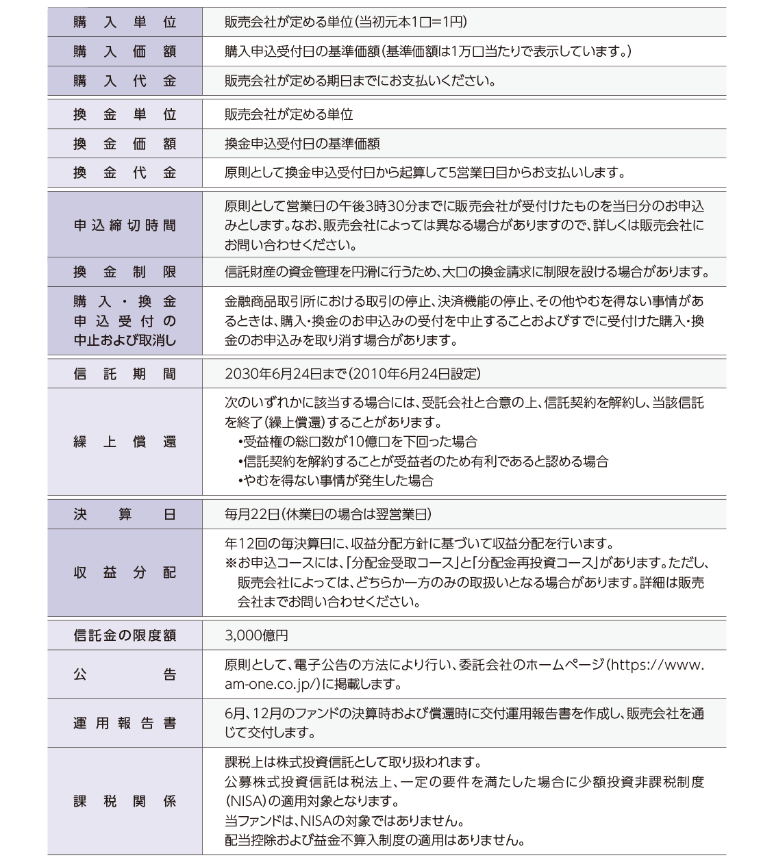 運用状況によっては、分配金額が変わる場合、あるいは分配金が支払われない場合があります。投資信託は、預金等や保険契約ではありません。また、預金保険機構および保険契約者保護機構の保護の対象ではありません。加えて証券会社を通して購入していない場合には投資者保護基金の対象にもなりません。購入金額については元本保証および利回り保証のいずれもありません。投資した資産の価値が減少して購入金額を下回る場合がありますが、これによる損失は購入者が負担することとなります。
