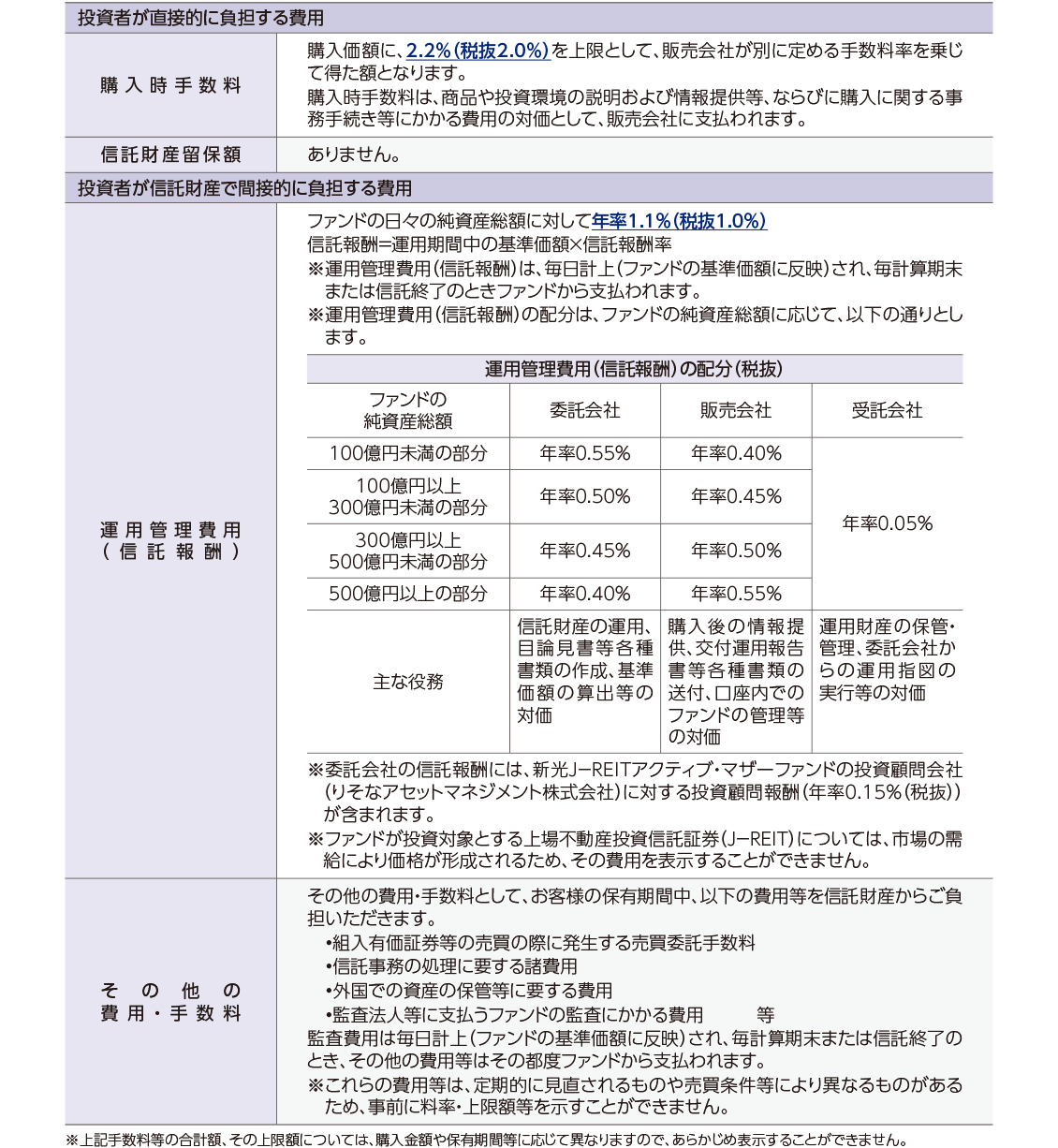 ファンドの費用
