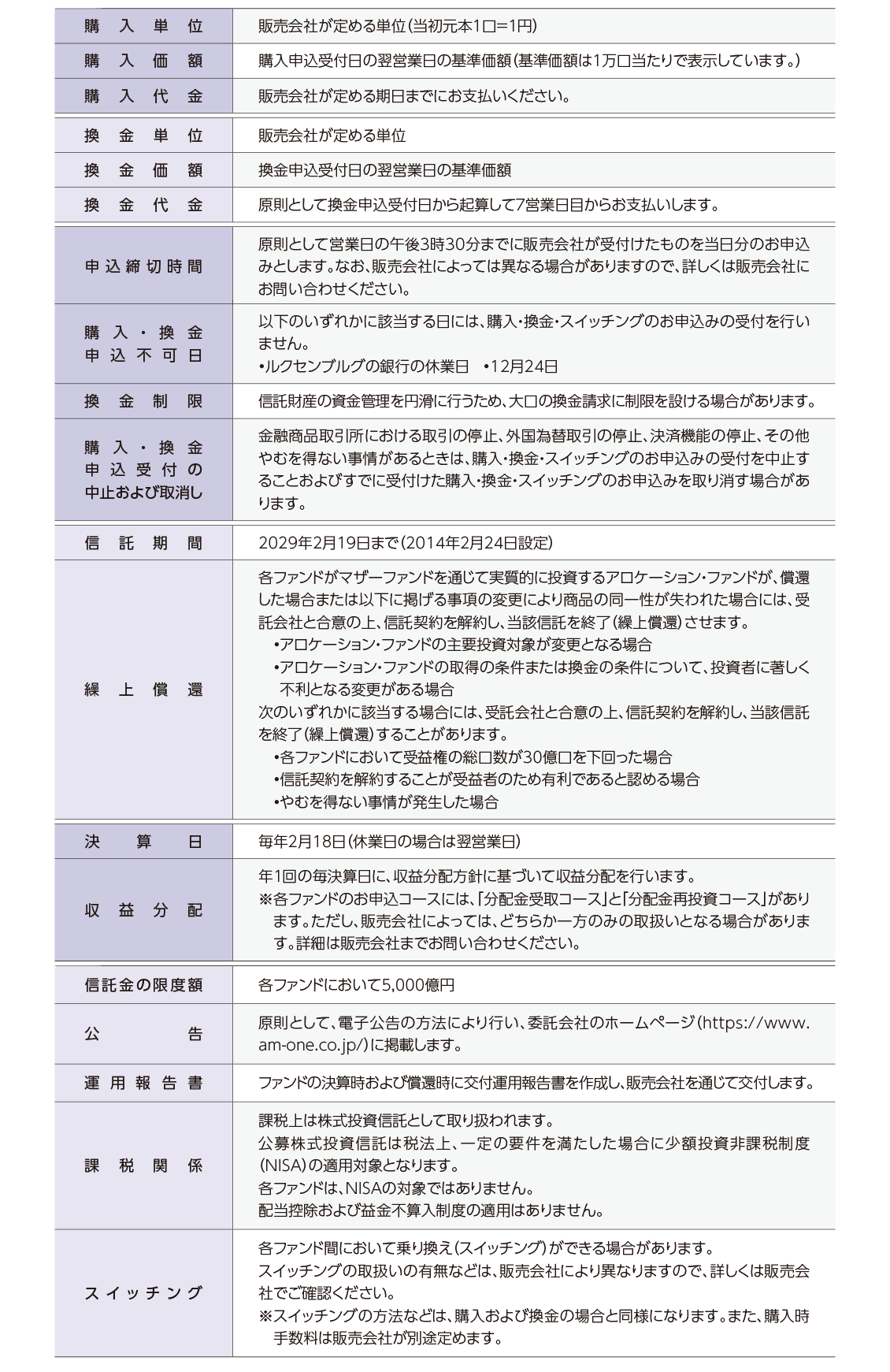 ファンド概要についての注意