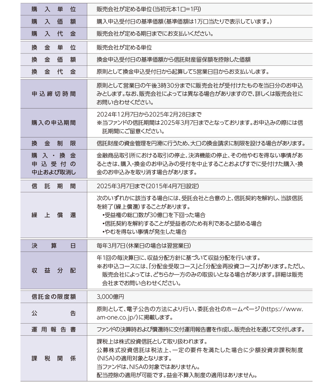 運用状況によっては、分配金額が変わる場合、あるいは分配金が支払われない場合があります。投資信託は、預金等や保険契約ではありません。また、預金保険機構および保険契約者保護機構の保護の対象ではありません。加えて証券会社を通して購入していない場合には投資者保護基金の対象にもなりません。購入金額については元本保証および利回り保証のいずれもありません。投資した資産の価値が減少して購入金額を下回る場合がありますが、これによる損失は購入者が負担することとなります。