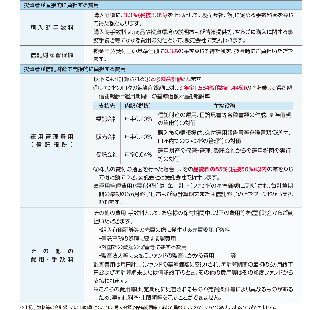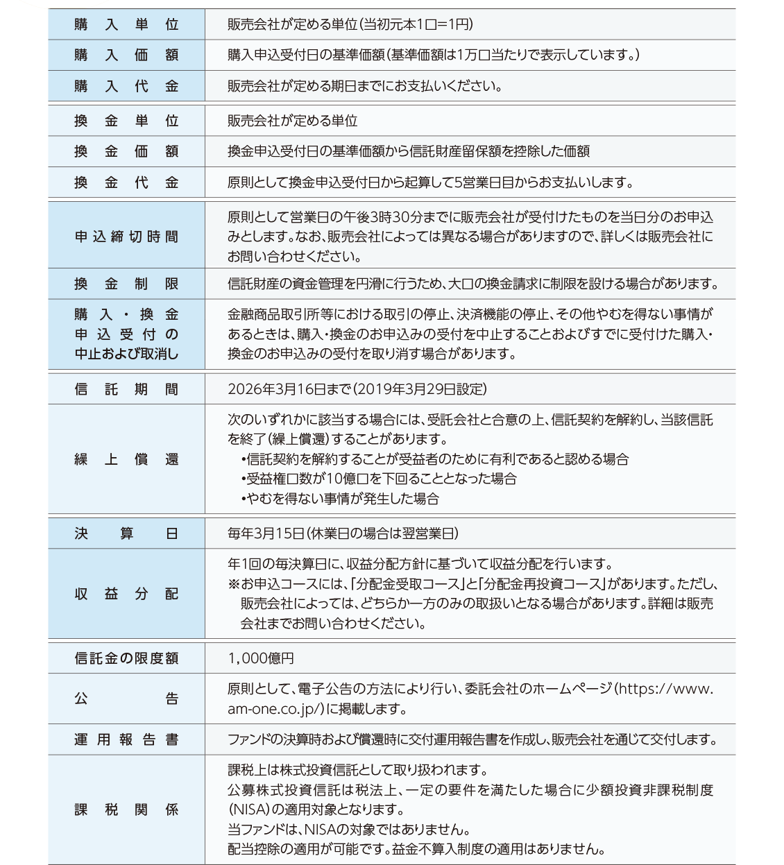 運用状況によっては、分配金額が変わる場合、あるいは分配金が支払われない場合があります。投資信託は、預金等や保険契約ではありません。また、預金保険機構および保険契約者保護機構の保護の対象ではありません。加えて証券会社を通して購入していない場合には投資者保護基金の対象にもなりません。購入金額については元本保証および利回り保証のいずれもありません。投資した資産の価値が減少して購入金額を下回る場合がありますが、これによる損失は購入者が負担することとなります。