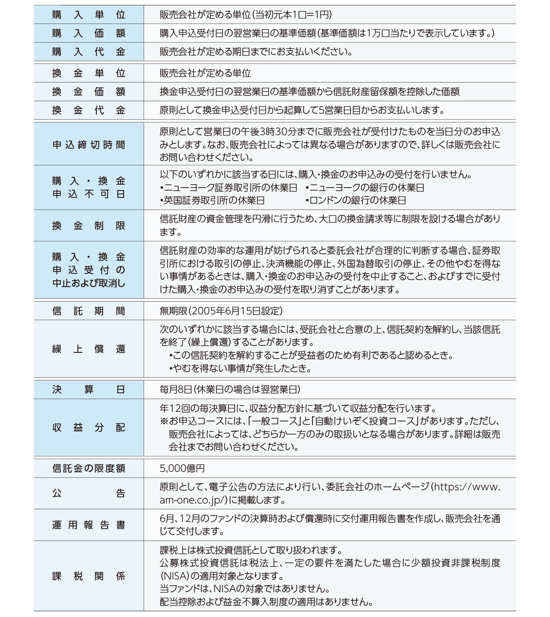 ファンド概要についての注意