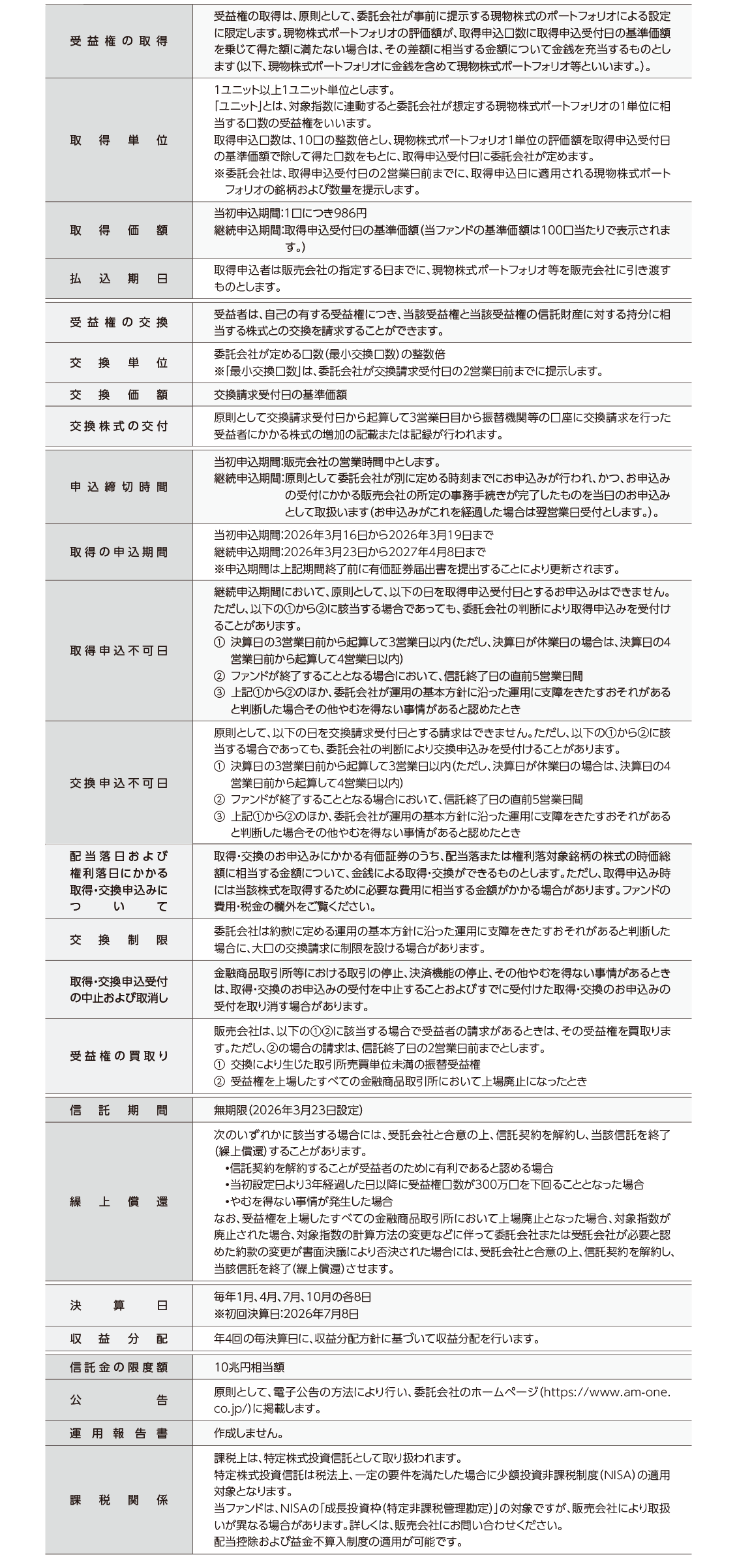 決算日:毎年1月、4月、7月、10月の各8日