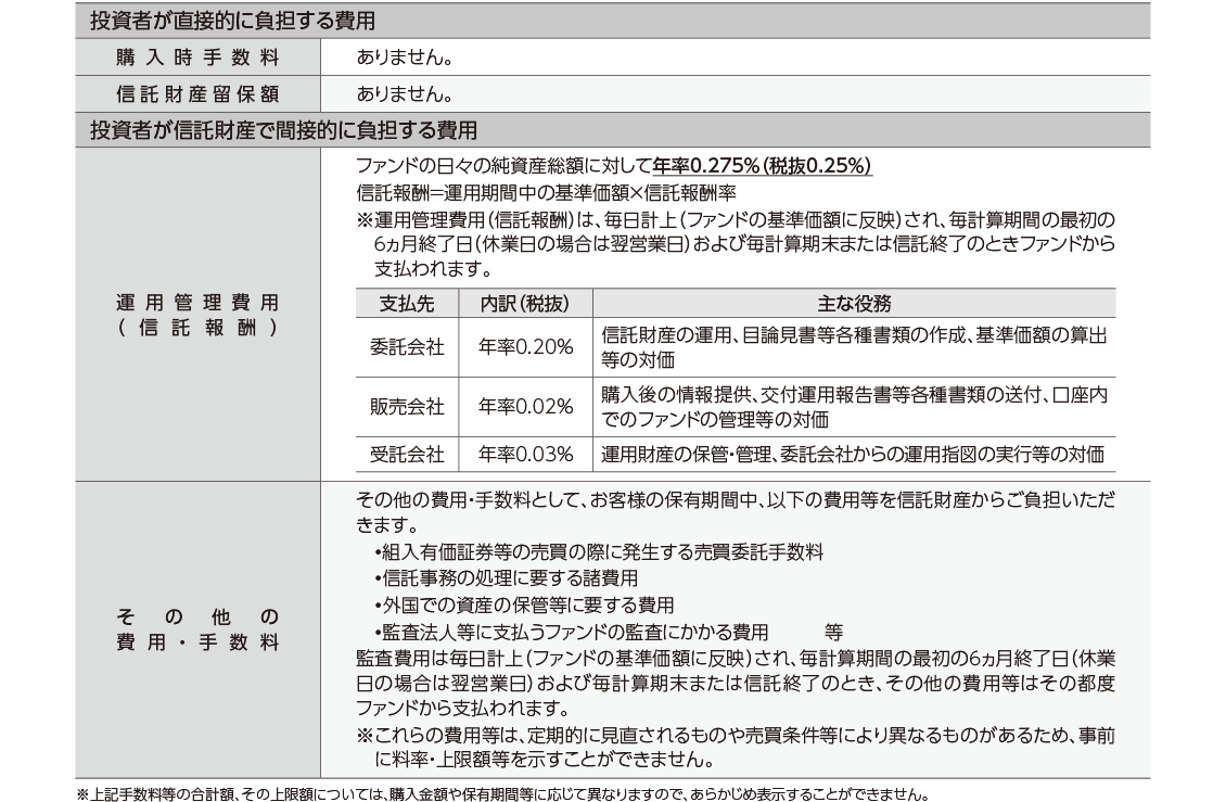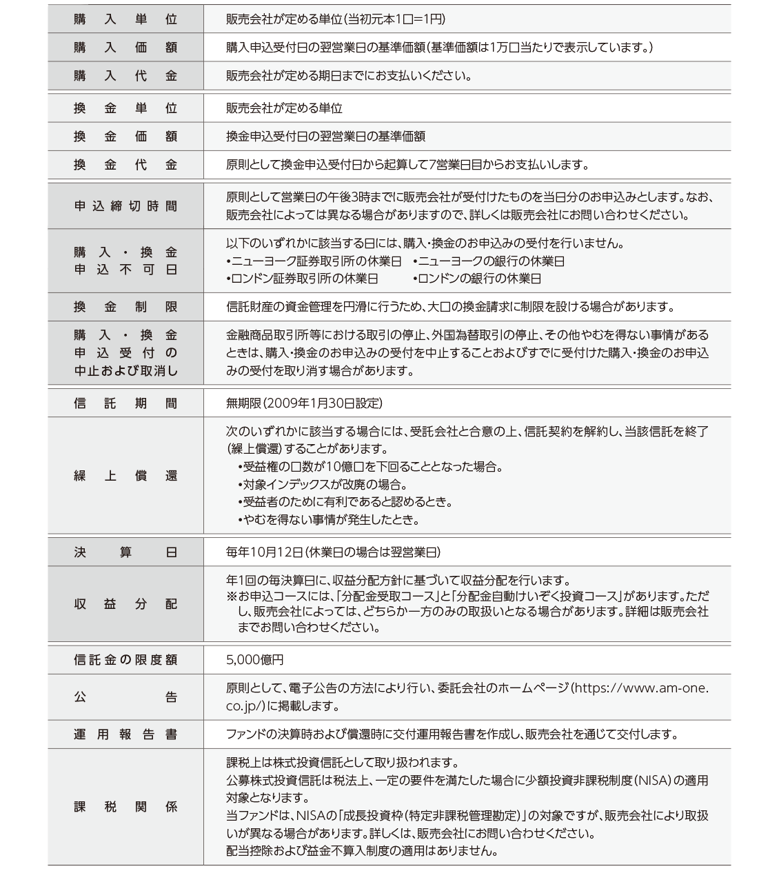 運用状況によっては、分配金額が変わる場合、あるいは分配金が支払われない場合があります。投資信託は、預金等や保険契約ではありません。また、預金保険機構および保険契約者保護機構の保護の対象ではありません。加えて証券会社を通して購入していない場合には投資者保護基金の対象にもなりません。購入金額については元本保証および利回り保証のいずれもありません。投資した資産の価値が減少して購入金額を下回る場合がありますが、これによる損失は購入者が負担することとなります。