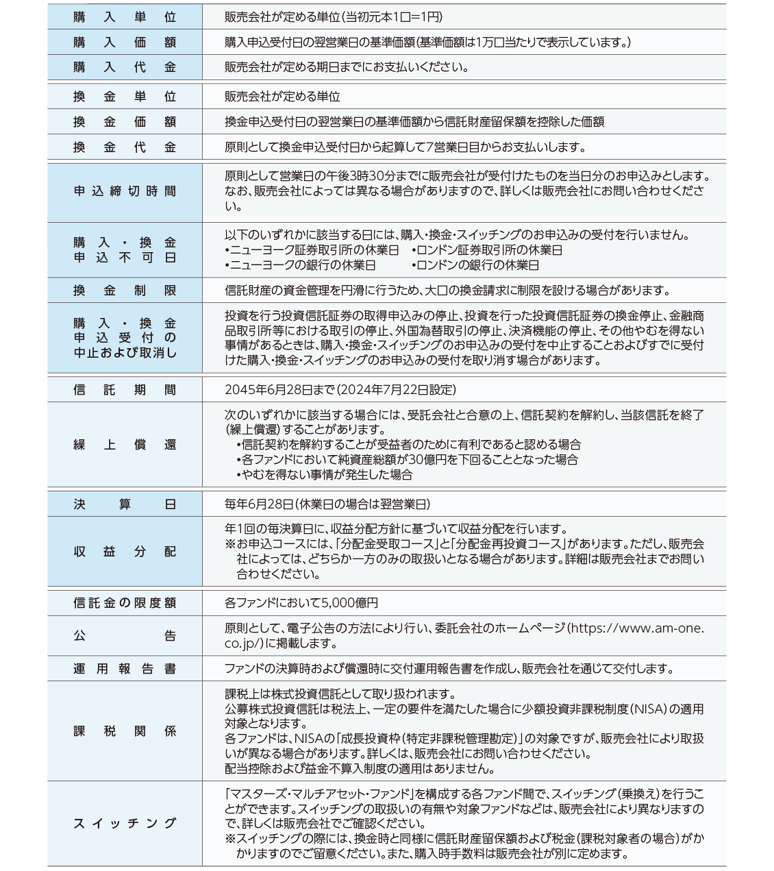 ファンド概要についての注意