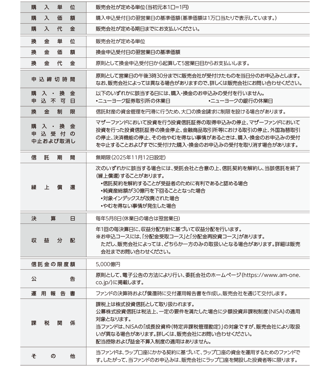 ファンド概要についての注意