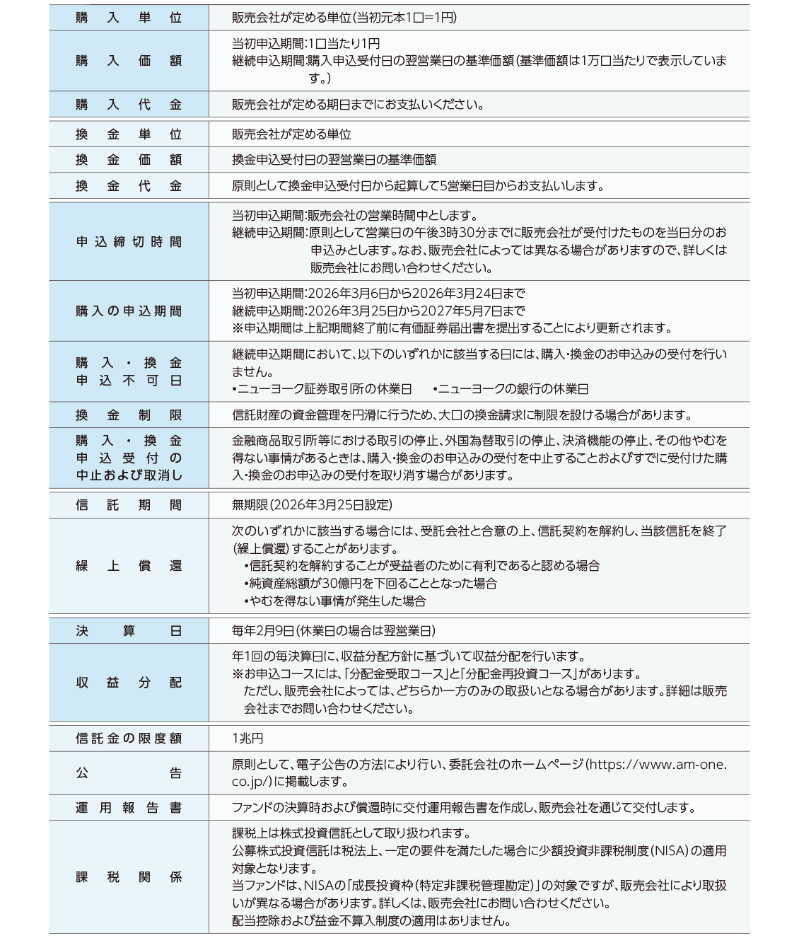 本ウェブサイトは、アセットマネジメントOne株式会社が作成したものです。お申込に際しては、投資信託説明書(交付目論見書)をあらかじめ、または同時にお渡し致しますので、必ず内容をご確認の上、ご自身でご判断ください。投資信託は、株式や債券等の値動きのある有価証券(外貨建資産には為替リスクもあります)に投資をしますので、市場環境、組入有価証券の発行者に係る信用状況等の変化により基準価額は変動します。このため、購入金額について元本保証および利回り保証のいずれもありません。本ウェブサイトは、アセットマネジメントOne株式会社が信頼できると判断したデータにより作成しておりますが、その内容の完全性、正確性について同社が保証するものではありません。また、掲載データは過去の実績であり、将来の運用成果を保証するものではありません。 本ウェブサイトに掲載されている情報(リンクされている外部サイトの情報も含む)に基づいて被ったいかなる損害についても一切の責任を負いません。本ウェブサイトの内容は作成時点のものであり、今後予告なく変更される場合があります。本ウェブサイトに記載した当社の見通し等は、将来の景気や株価等の動きを保証するものではありません。基準価額・分配金再投資基準価額・分配金込み基準価額は信託報酬控除後の価額です。当初元本が1口1円のファンドについては1万口当たりの価額を、それ以外のファンドについては1口あたりの価額を表示しています。換金時の費用・税金等は考慮しておりません。ただし、ETFの表記している口数については別途ご確認ください。分配金の表示数値は、基準価額の表示口数当たり課税前の金額です。表示方法については、公社債投信は小数点第二位まで、その他のファンドは整数部のみとしているため、実際の分配金額と表示上の差異が生じることがあります。運用状況によっては、分配金額が変わる場合、あるいは分配金が支払われない場合があります。投資信託は、預金等や保険契約ではありません。また、預金保険機構および保険契約者保護機構の保護の対象ではありません。加えて証券会社を通して購入していない場合には投資者保護基金の対象にもなりません。購入金額については元本保証および利回り保証のいずれもありません。投資した資産の価値が減少して購入金額を下回る場合がありますが、これによる損失は購入者が負担することとなります。