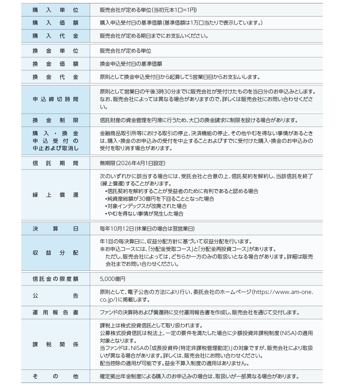 ファンド概要についての注意