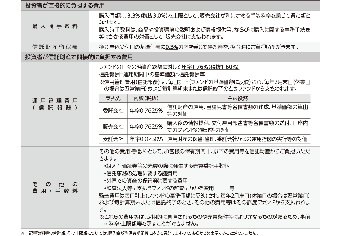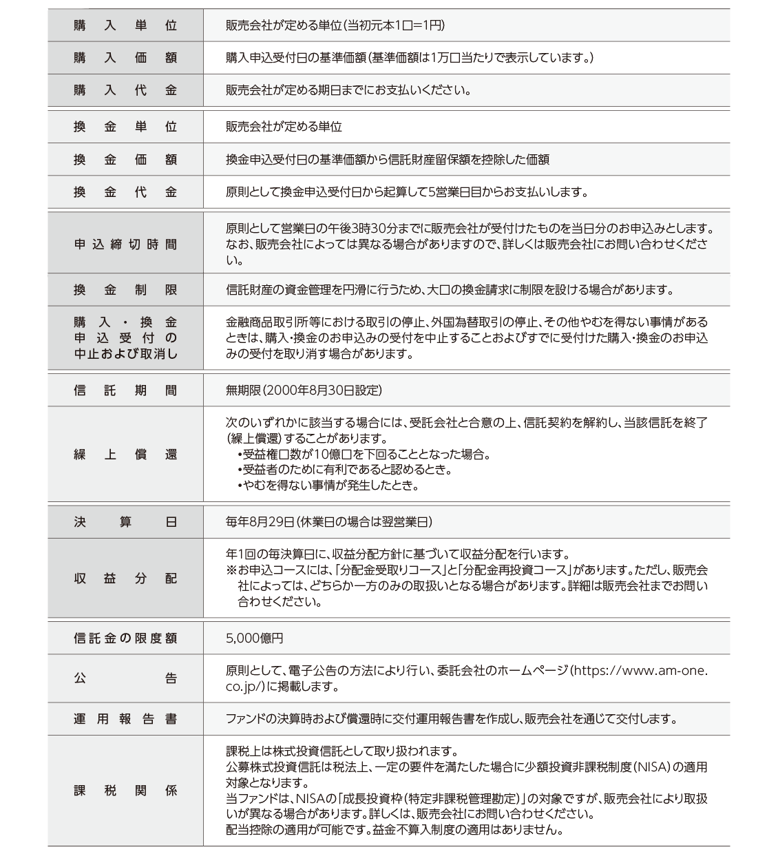運用状況によっては、分配金額が変わる場合、あるいは分配金が支払われない場合があります。投資信託は、預金等や保険契約ではありません。また、預金保険機構および保険契約者保護機構の保護の対象ではありません。加えて証券会社を通して購入していない場合には投資者保護基金の対象にもなりません。購入金額については元本保証および利回り保証のいずれもありません。投資した資産の価値が減少して購入金額を下回る場合がありますが、これによる損失は購入者が負担することとなります。