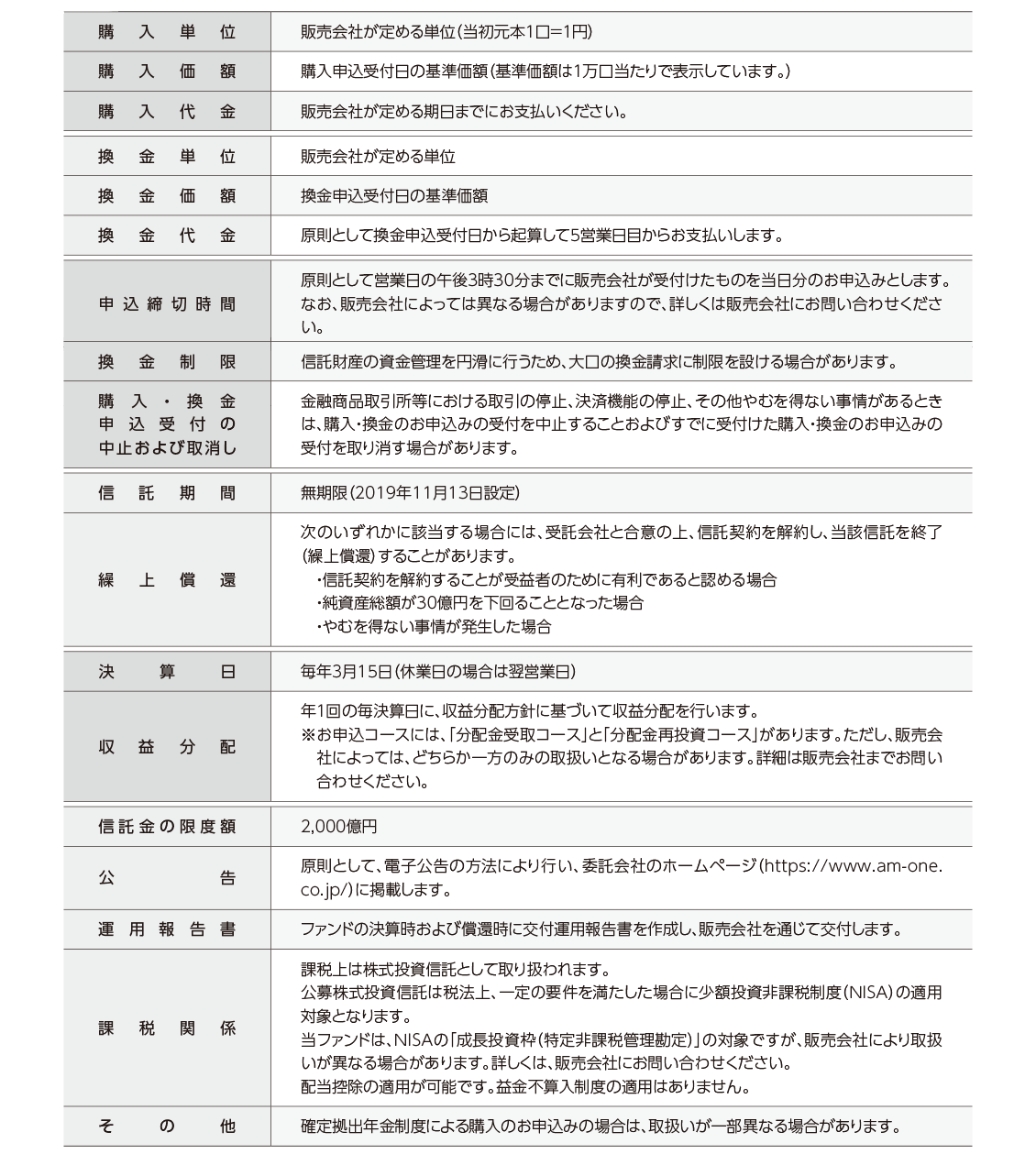 運用状況によっては、分配金額が変わる場合、あるいは分配金が支払われない場合があります。投資信託は、預金等や保険契約ではありません。また、預金保険機構および保険契約者保護機構の保護の対象ではありません。加えて証券会社を通して購入していない場合には投資者保護基金の対象にもなりません。購入金額については元本保証および利回り保証のいずれもありません。投資した資産の価値が減少して購入金額を下回る場合がありますが、これによる損失は購入者が負担することとなります。