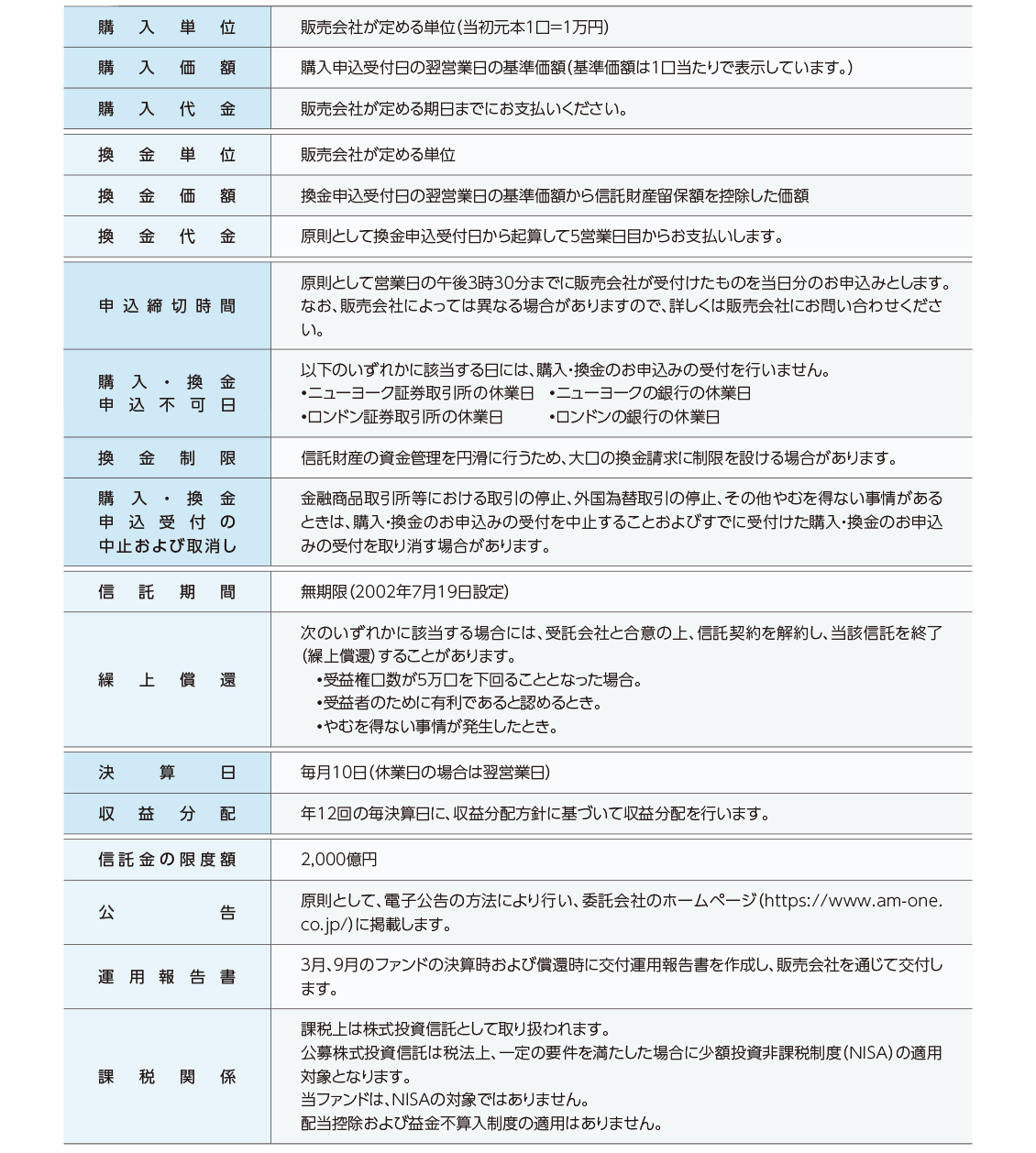 ファンド概要についての注意