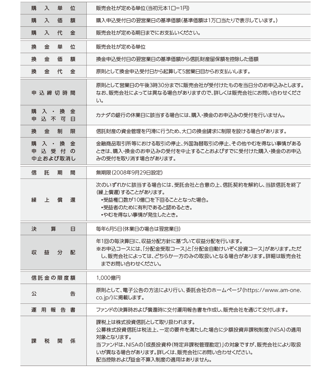 ファンド概要についての注意