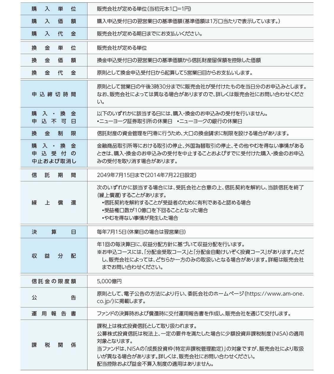 運用状況によっては、分配金額が変わる場合、あるいは分配金が支払われない場合があります。投資信託は、預金等や保険契約ではありません。また、預金保険機構および保険契約者保護機構の保護の対象ではありません。加えて証券会社を通して購入していない場合には投資者保護基金の対象にもなりません。購入金額については元本保証および利回り保証のいずれもありません。投資した資産の価値が減少して購入金額を下回る場合がありますが、これによる損失は購入者が負担することとなります。