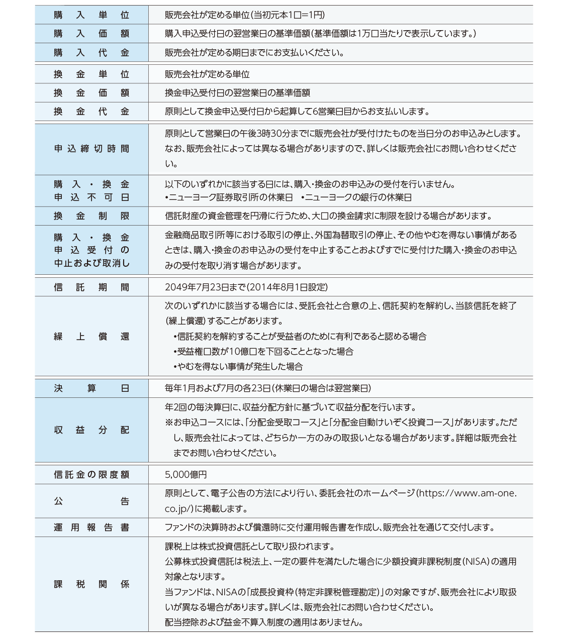 運用状況によっては、分配金額が変わる場合、あるいは分配金が支払われない場合があります。投資信託は、預金等や保険契約ではありません。また、預金保険機構および保険契約者保護機構の保護の対象ではありません。加えて証券会社を通して購入していない場合には投資者保護基金の対象にもなりません。購入金額については元本保証および利回り保証のいずれもありません。投資した資産の価値が減少して購入金額を下回る場合がありますが、これによる損失は購入者が負担することとなります。