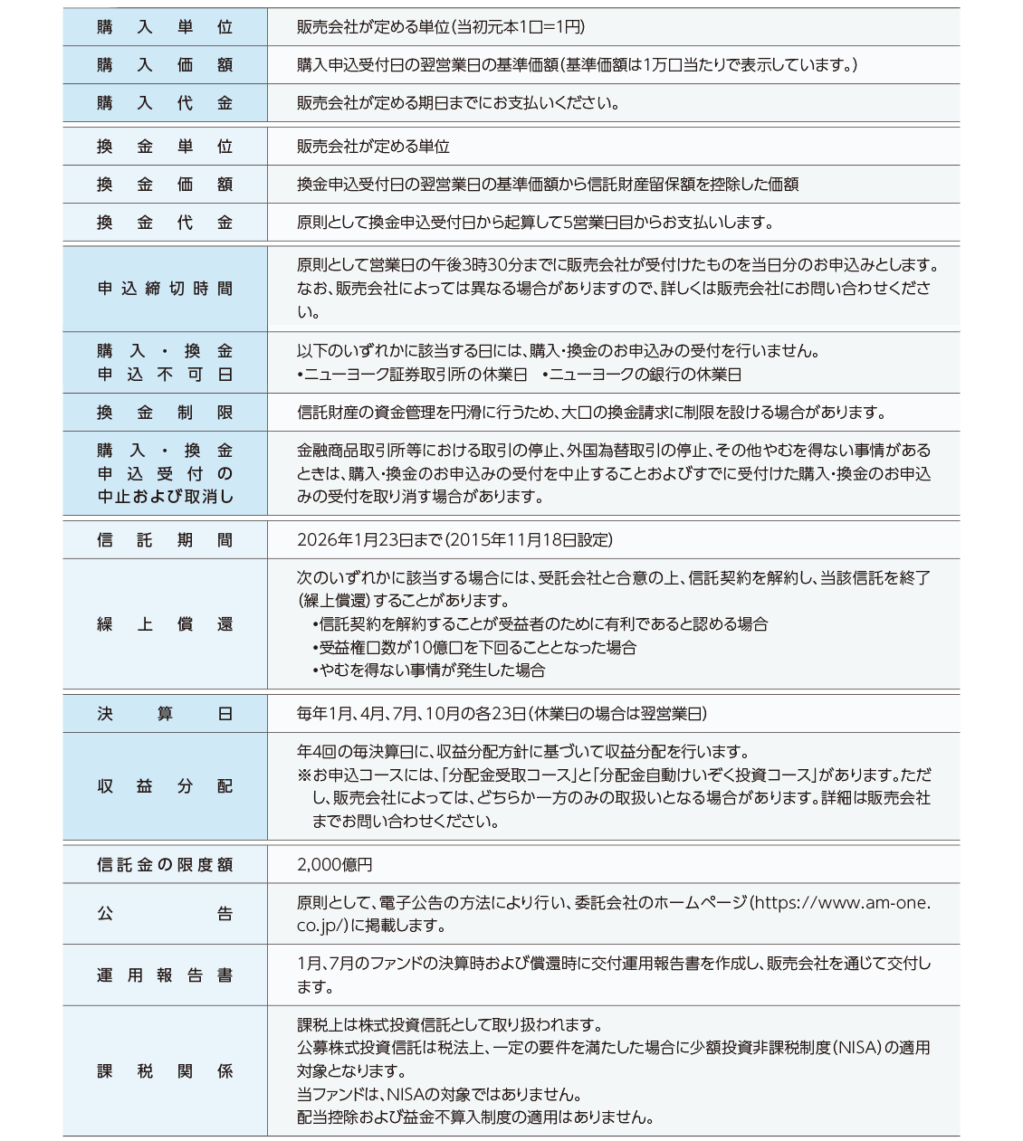 運用状況によっては、分配金額が変わる場合、あるいは分配金が支払われない場合があります。投資信託は、預金等や保険契約ではありません。また、預金保険機構および保険契約者保護機構の保護の対象ではありません。加えて証券会社を通して購入していない場合には投資者保護基金の対象にもなりません。購入金額については元本保証および利回り保証のいずれもありません。投資した資産の価値が減少して購入金額を下回る場合がありますが、これによる損失は購入者が負担することとなります。