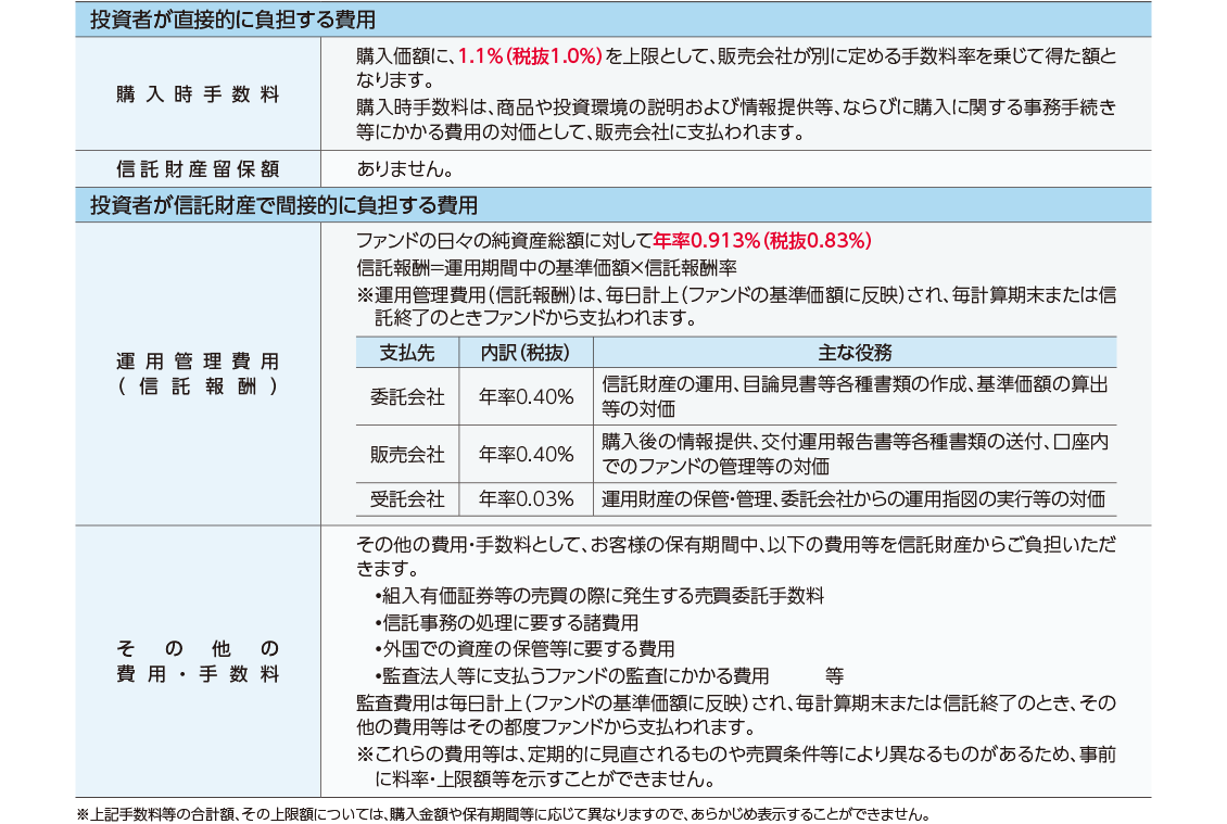 運用状況によっては、分配金額が変わる場合、あるいは分配金が支払われない場合があります。投資信託は、預金等や保険契約ではありません。また、預金保険機構および保険契約者保護機構の保護の対象ではありません。加えて証券会社を通して購入していない場合には投資者保護基金の対象にもなりません。購入金額については元本保証および利回り保証のいずれもありません。投資した資産の価値が減少して購入金額を下回る場合がありますが、これによる損失は購入者が負担することとなります。
