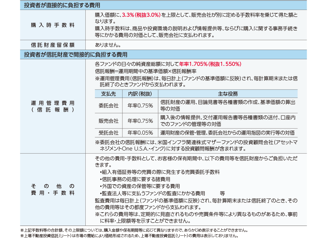 運用状況によっては、分配金額が変わる場合、あるいは分配金が支払われない場合があります。投資信託は、預金等や保険契約ではありません。また、預金保険機構および保険契約者保護機構の保護の対象ではありません。加えて証券会社を通して購入していない場合には投資者保護基金の対象にもなりません。購入金額については元本保証および利回り保証のいずれもありません。投資した資産の価値が減少して購入金額を下回る場合がありますが、これによる損失は購入者が負担することとなります。