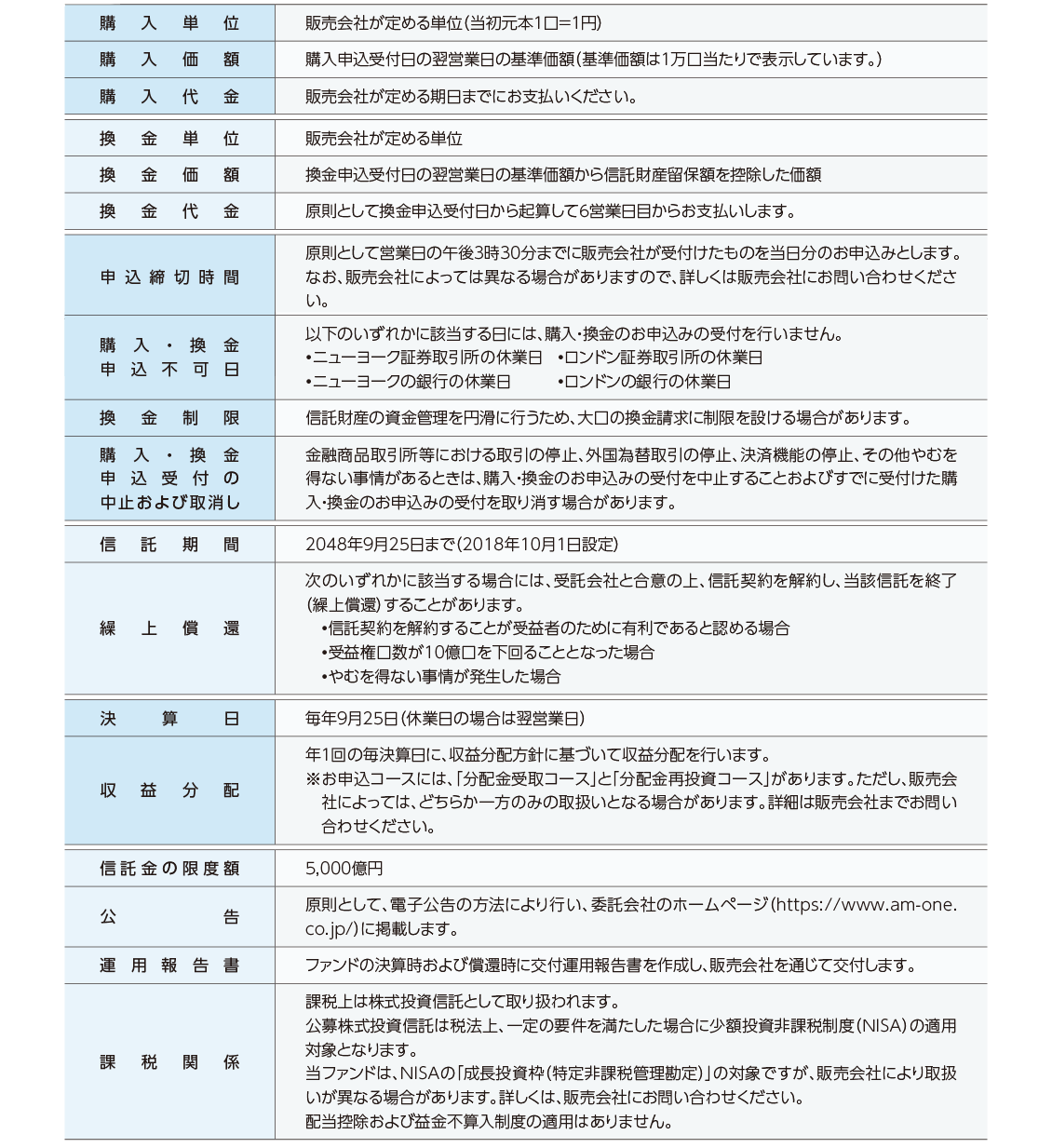 運用状況によっては、分配金額が変わる場合、あるいは分配金が支払われない場合があります。投資信託は、預金等や保険契約ではありません。また、預金保険機構および保険契約者保護機構の保護の対象ではありません。加えて証券会社を通して購入していない場合には投資者保護基金の対象にもなりません。購入金額については元本保証および利回り保証のいずれもありません。投資した資産の価値が減少して購入金額を下回る場合がありますが、これによる損失は購入者が負担することとなります。