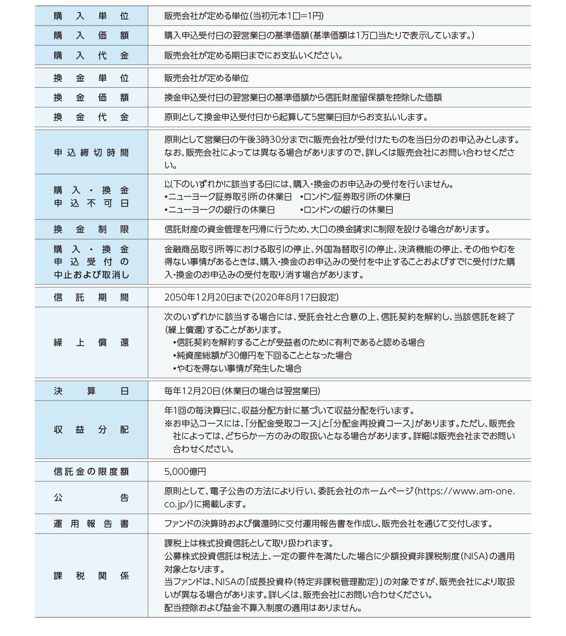 ファンド概要についての注意