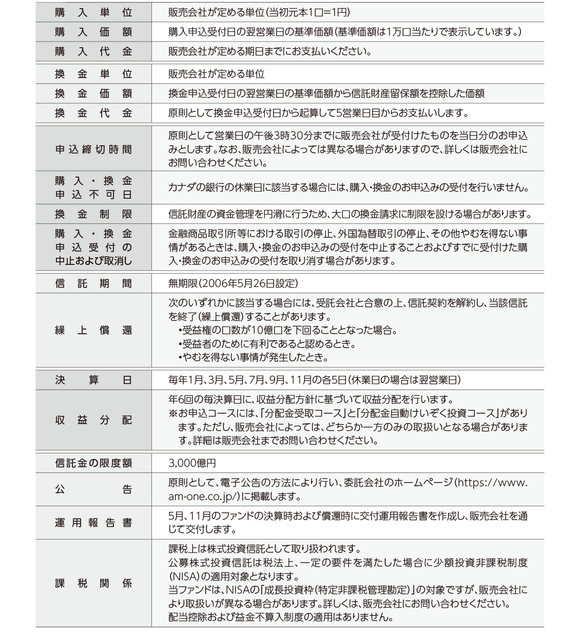 運用状況によっては、分配金額が変わる場合、あるいは分配金が支払われない場合があります。投資信託は、預金等や保険契約ではありません。また、預金保険機構および保険契約者保護機構の保護の対象ではありません。加えて証券会社を通して購入していない場合には投資者保護基金の対象にもなりません。購入金額については元本保証および利回り保証のいずれもありません。投資した資産の価値が減少して購入金額を下回る場合がありますが、これによる損失は購入者が負担することとなります。