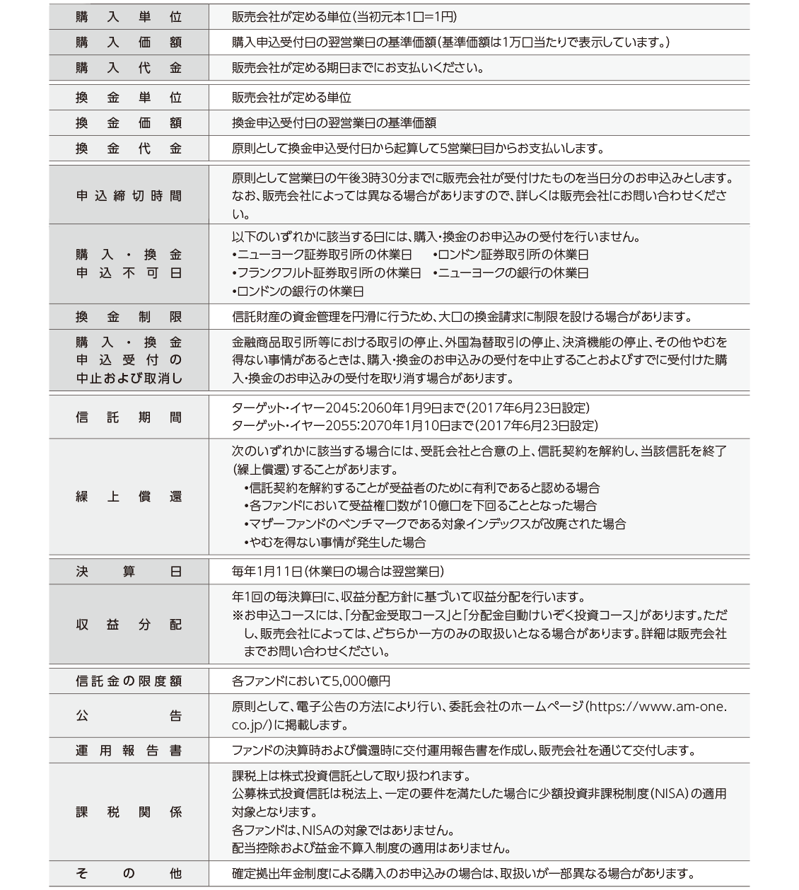 ファンド概要についての注意
