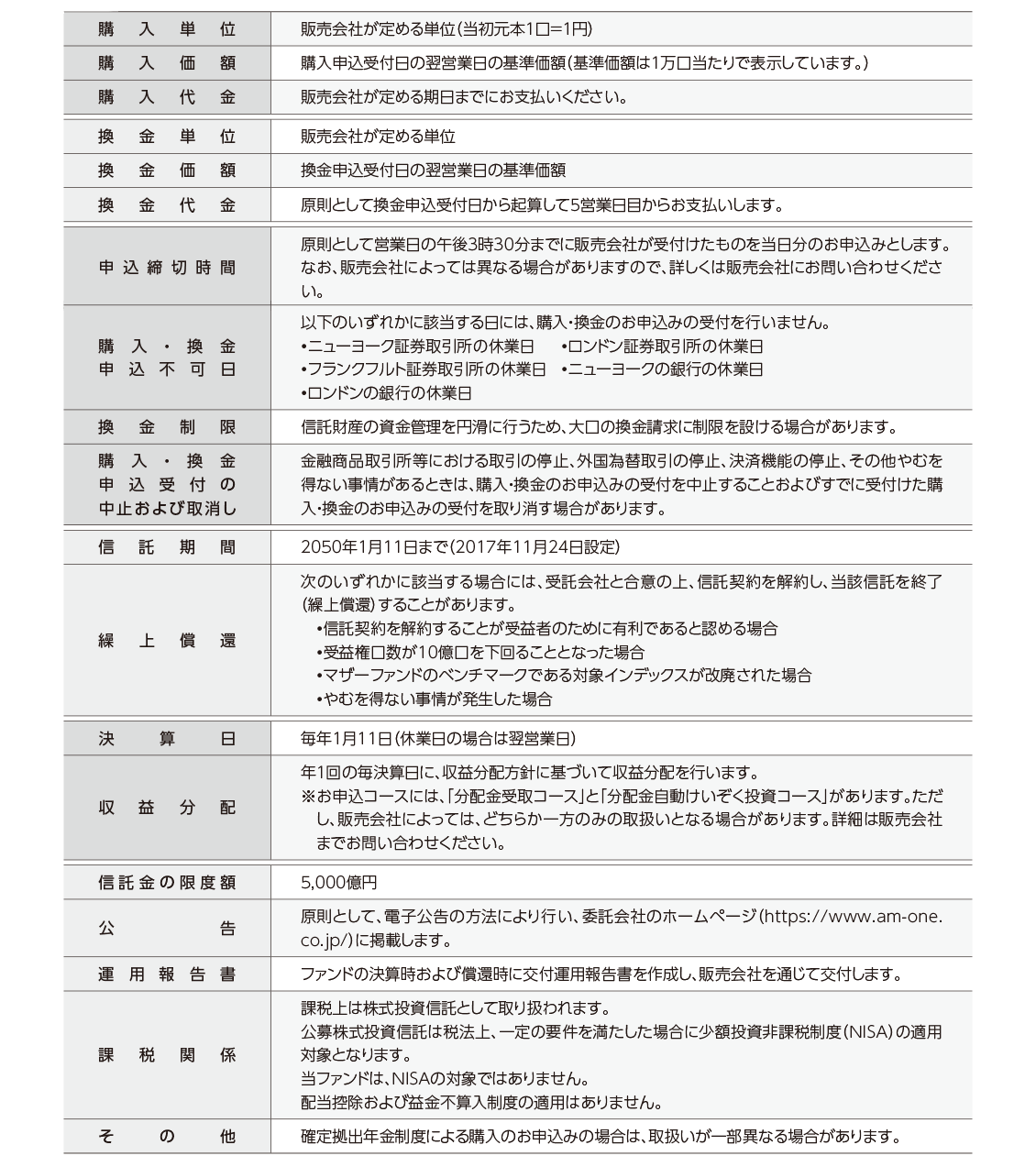 ファンド概要についての注意