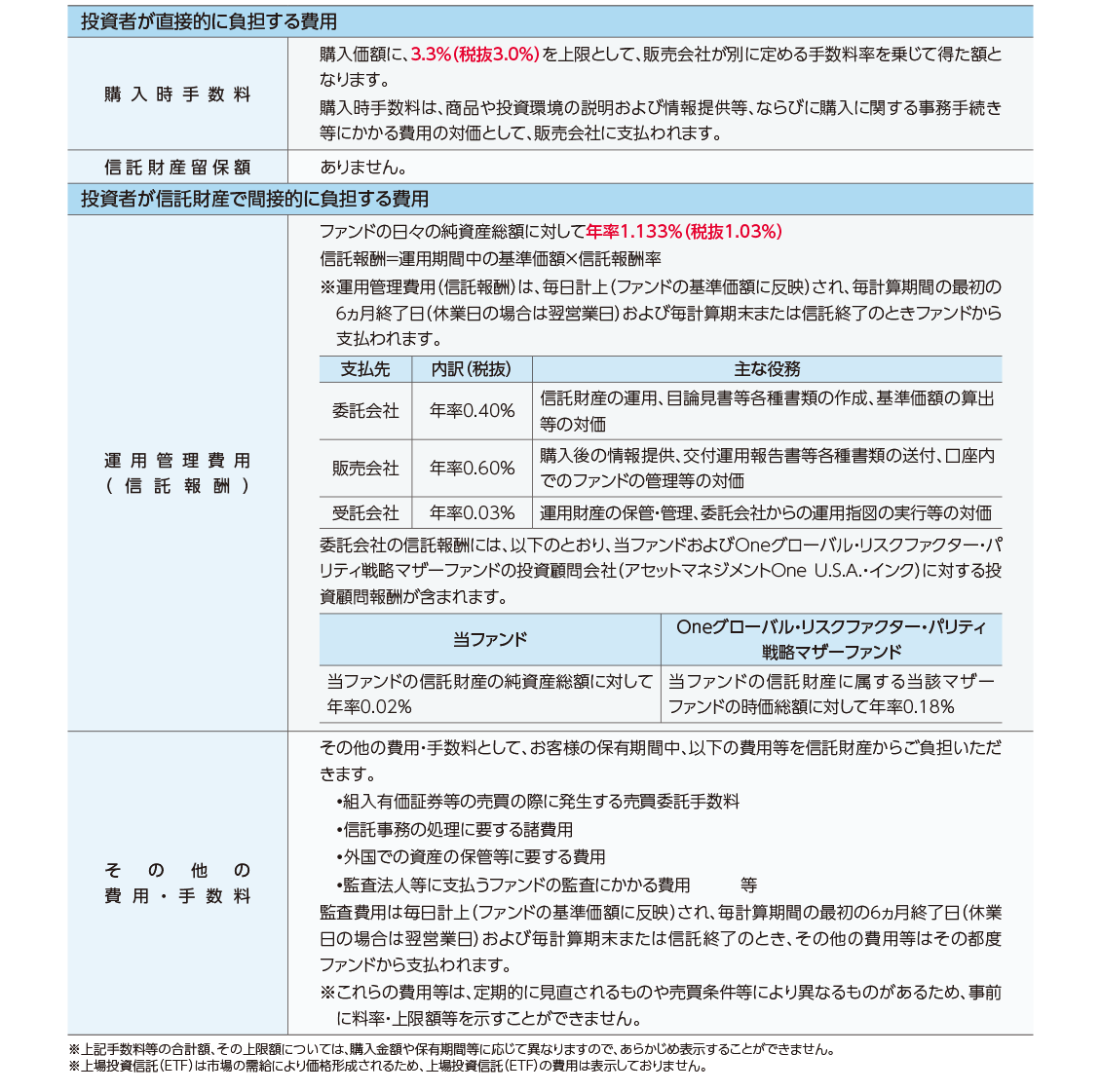 ファンドの費用