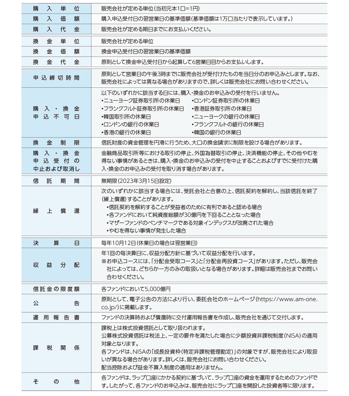ファンド概要についての注意