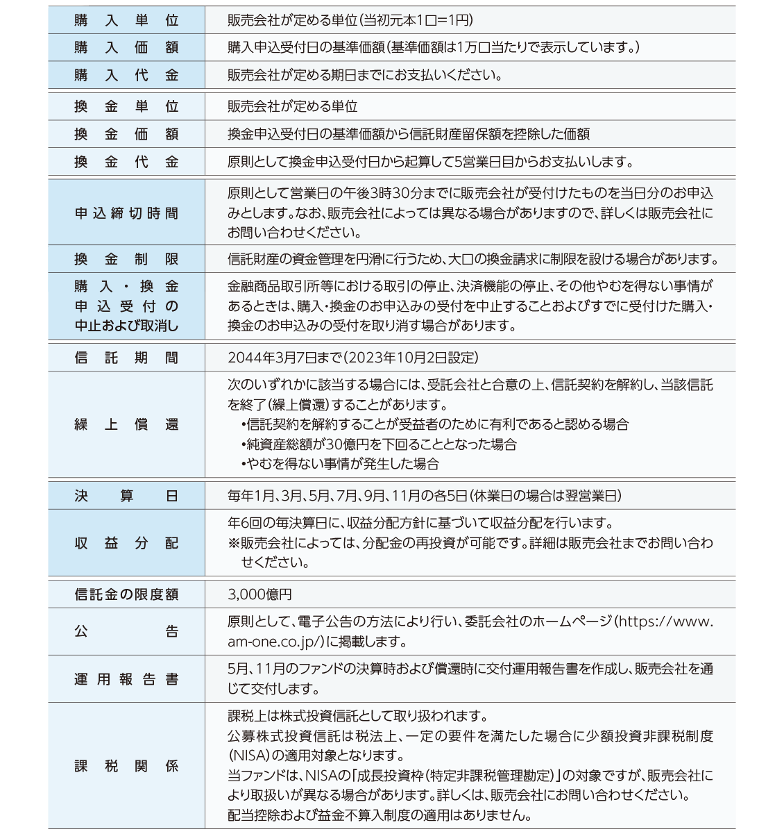 決算日:毎年1月、3月、5月、7月、9月、11月の各5日