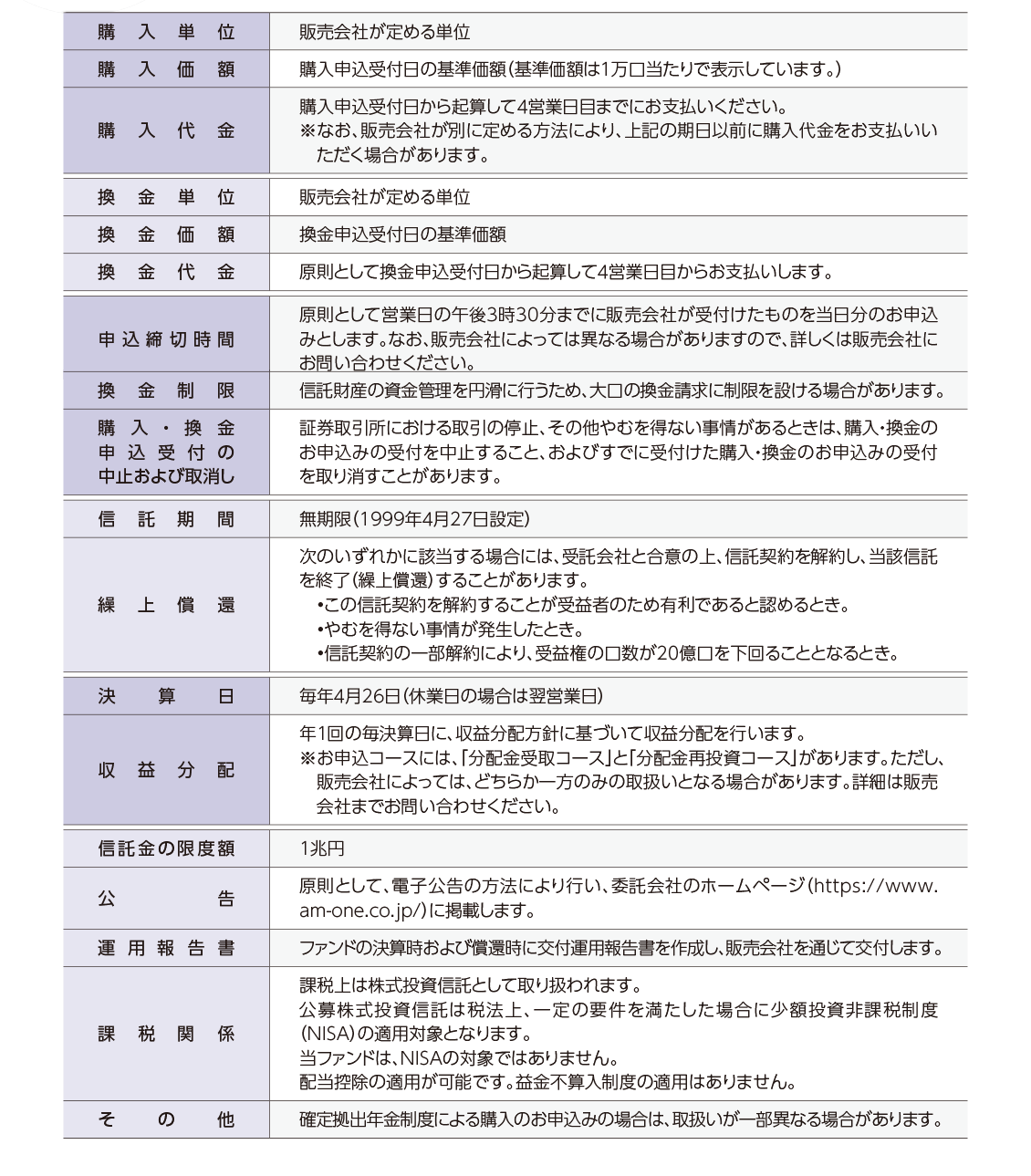 運用状況によっては、分配金額が変わる場合、あるいは分配金が支払われない場合があります。投資信託は、預金等や保険契約ではありません。また、預金保険機構および保険契約者保護機構の保護の対象ではありません。加えて証券会社を通して購入していない場合には投資者保護基金の対象にもなりません。購入金額については元本保証および利回り保証のいずれもありません。投資した資産の価値が減少して購入金額を下回る場合がありますが、これによる損失は購入者が負担することとなります。