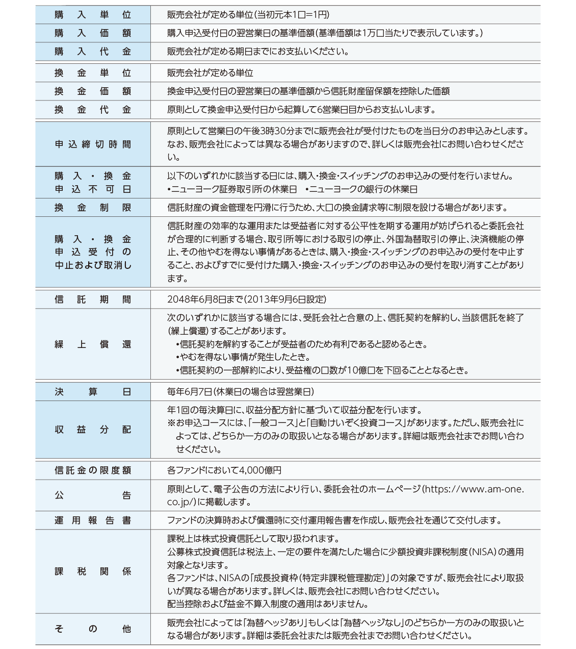 ファンド概要についての注意