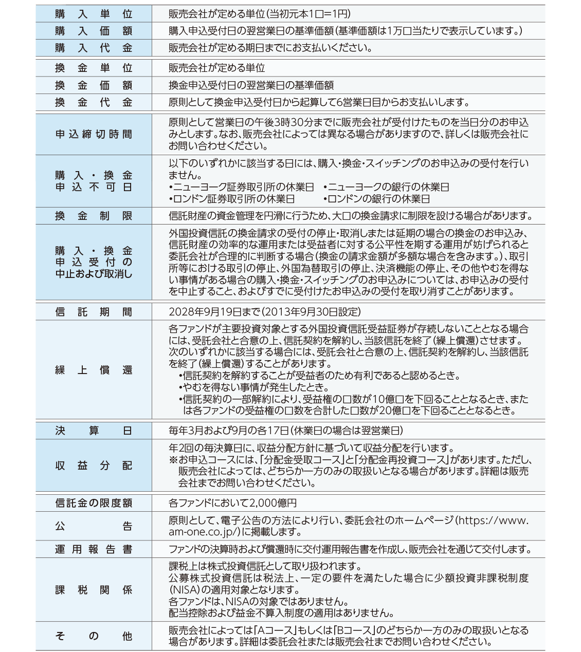 ファンド概要についての注意