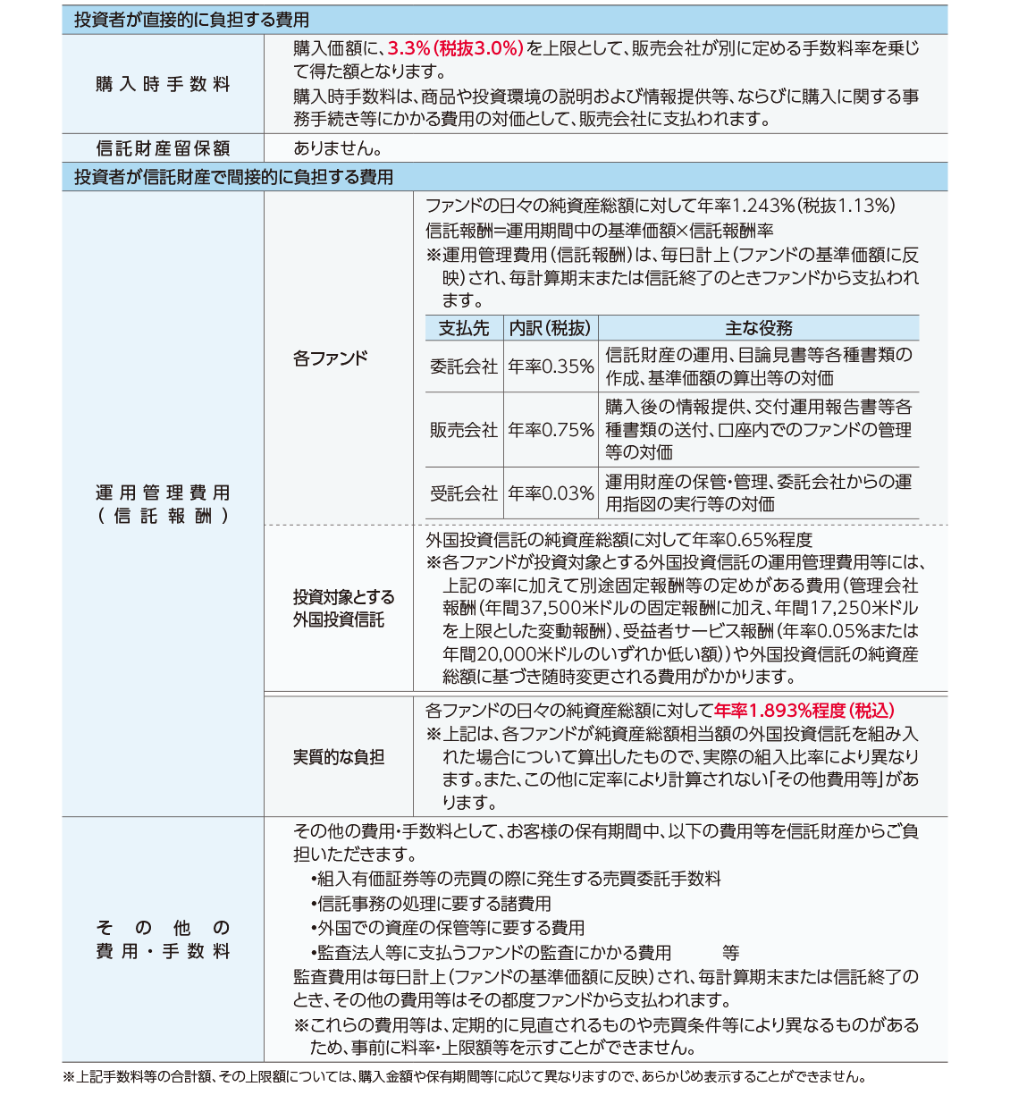 ファンドの費用