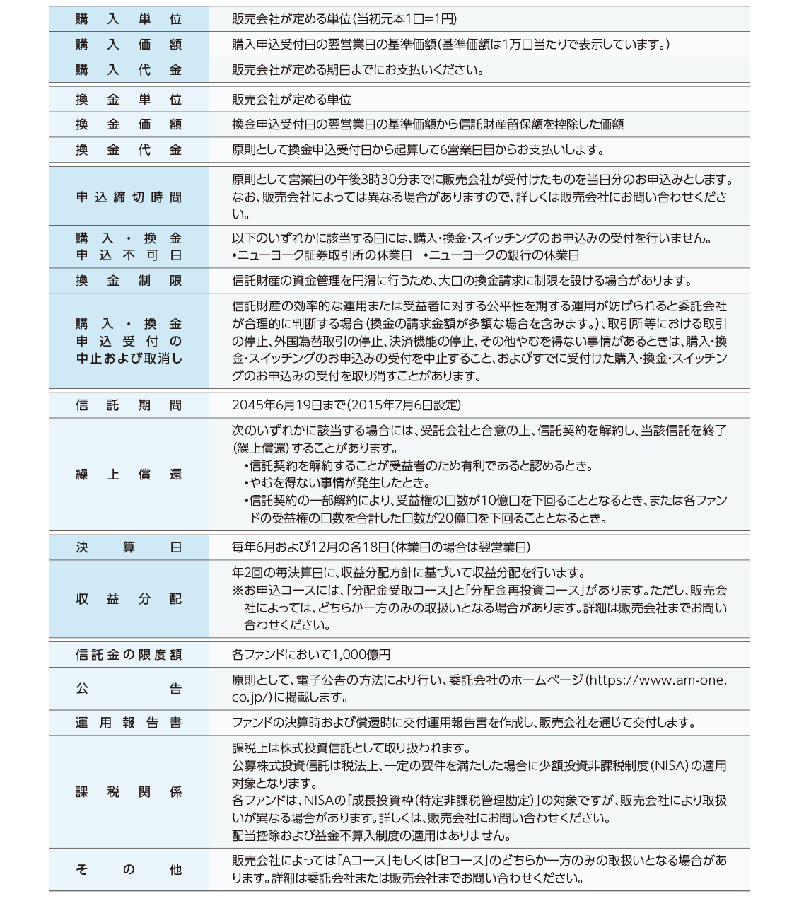 ファンド概要についての注意