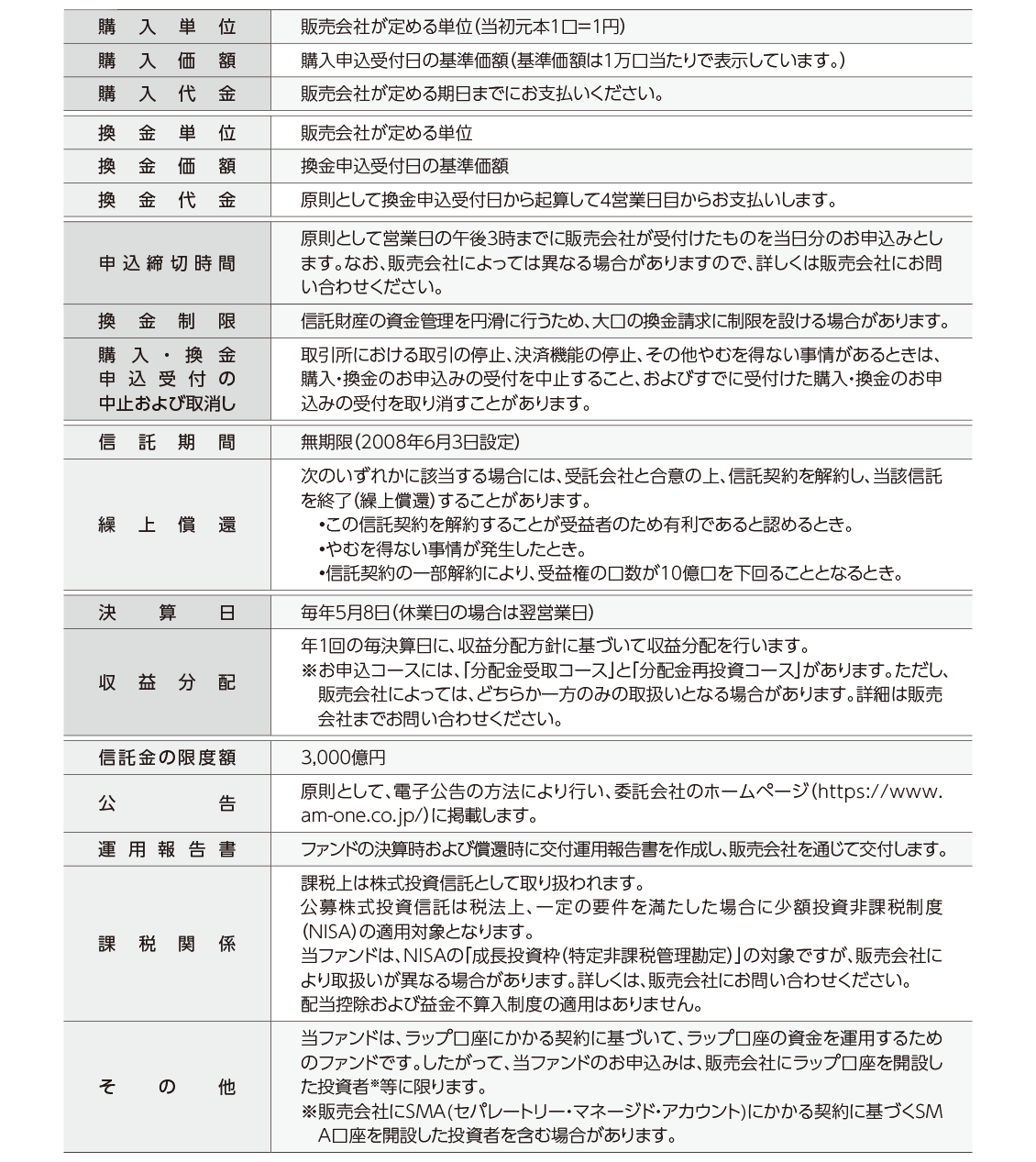ファンド概要についての注意