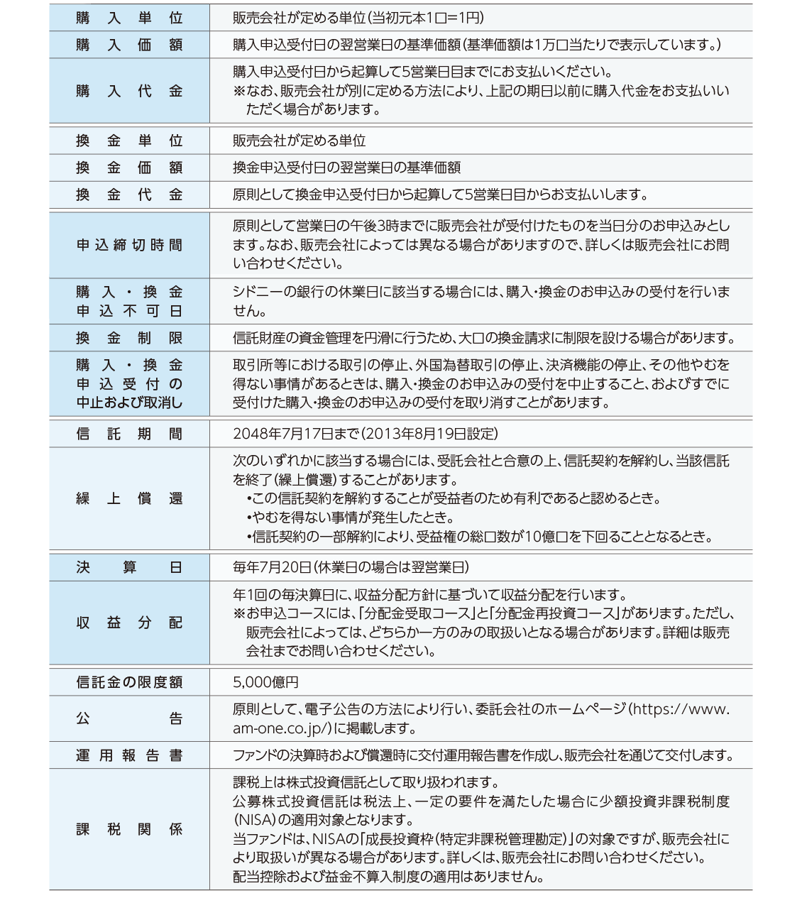 運用状況によっては、分配金額が変わる場合、あるいは分配金が支払われない場合があります。投資信託は、預金等や保険契約ではありません。また、預金保険機構および保険契約者保護機構の保護の対象ではありません。加えて証券会社を通して購入していない場合には投資者保護基金の対象にもなりません。購入金額については元本保証および利回り保証のいずれもありません。投資した資産の価値が減少して購入金額を下回る場合がありますが、これによる損失は購入者が負担することとなります。