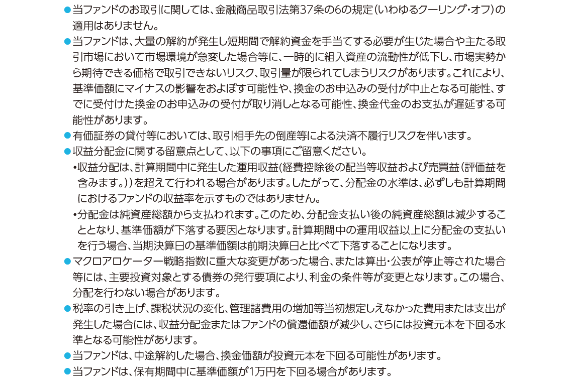有価証券一般もしくは当ファンドへの投資の適否、当ファンドが一般市場もしくは