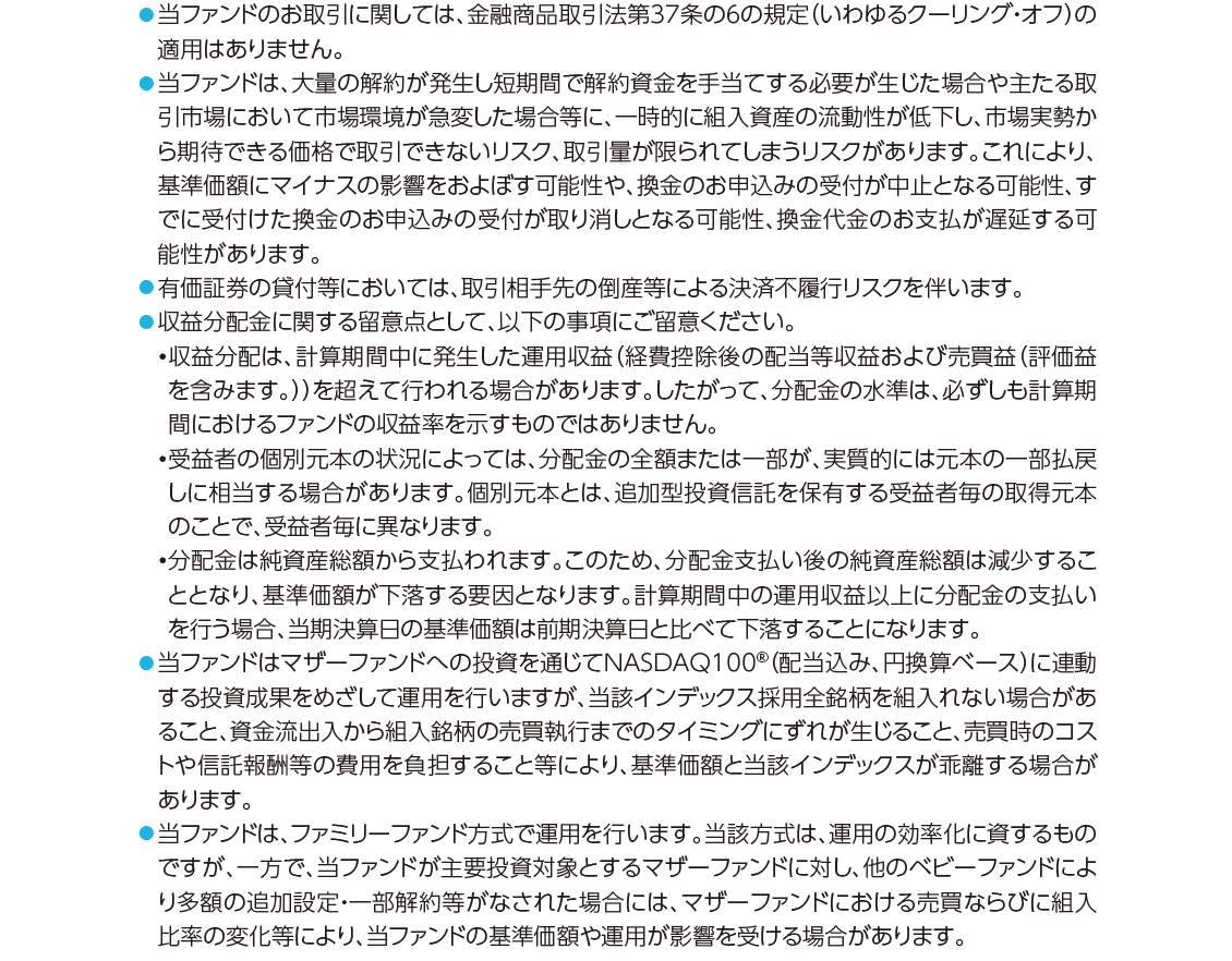 商品分類:追加型投信/海外/株式/インデックス型 日経新聞掲載名:ロ・NQ100 決算日:毎年10月12日