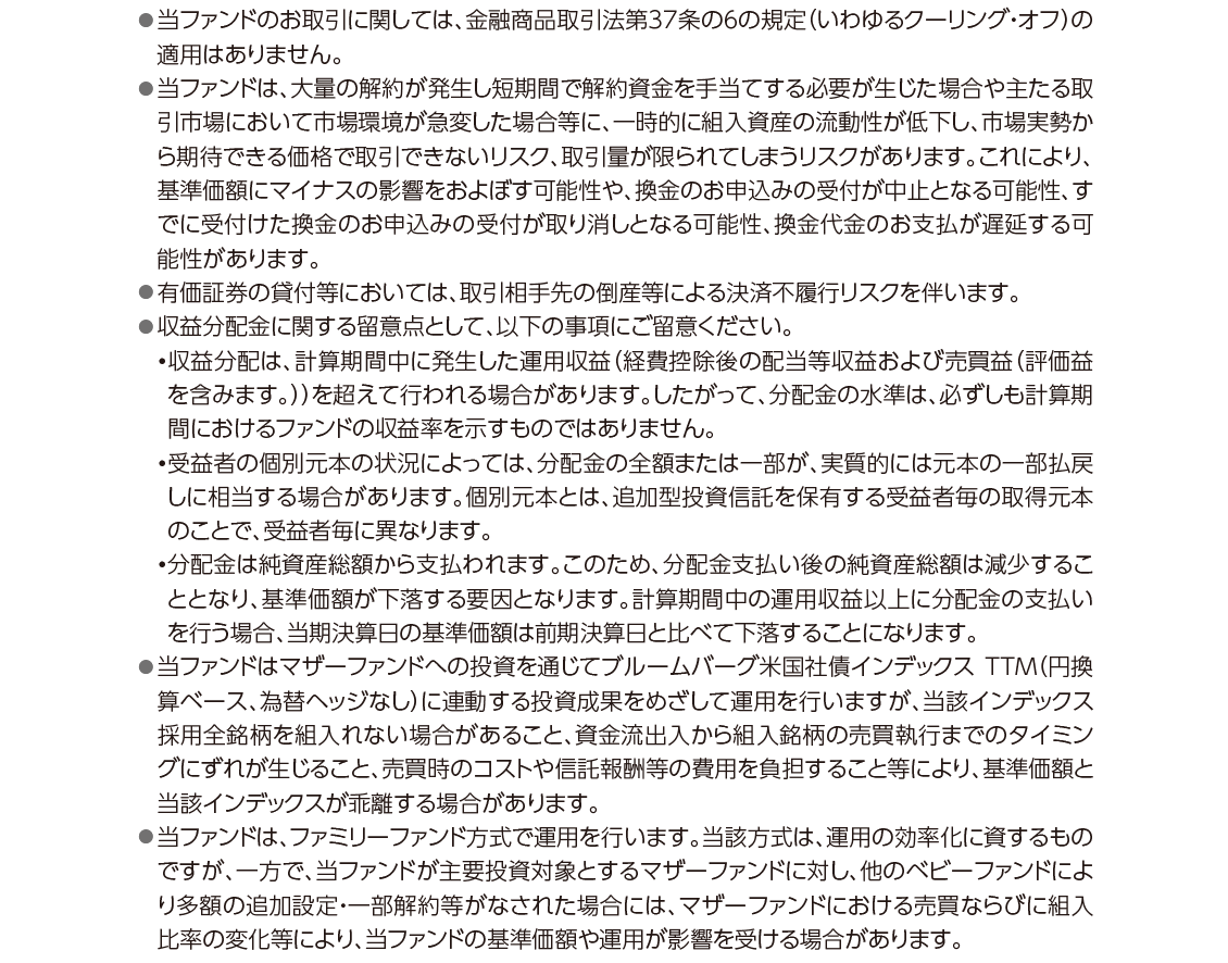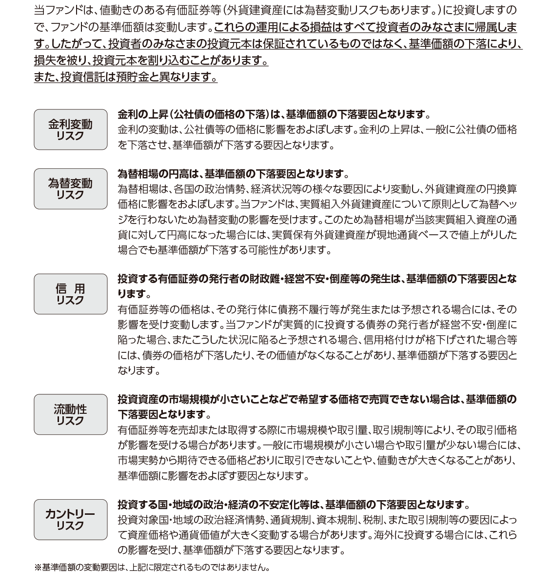 本ウェブサイトは、アセットマネジメントOne株式会社が作成したものです。お申込に際しては、投資信託説明書(交付目論見書)をあらかじめ、または同時にお渡し致しますので、必ず内容をご確認の上、ご自身でご判断ください。投資信託は、株式や債券等の値動きのある有価証券(外貨建資産には為替リスクもあります)に投資をしますので、市場環境、組入有価証券の発行者に係る信用状況等の変化により基準価額は変動します。このため、購入金額について元本保証および利回り保証のいずれもありません。本ウェブサイトは、アセットマネジメントOne株式会社が信頼できると判断したデータにより作成しておりますが、その内容の完全性、正確性について同社が保証するものではありません。また、掲載データは過去の実績であり、将来の運用成果を保証するものではありません。 本ウェブサイトに掲載されている情報(リンクされている外部サイトの情報も含む)に基づいて被ったいかなる損害についても一切の責任を負いません。本ウェブサイトの内容は作成時点のものであり、今後予告なく変更される場合があります。本ウェブサイトに記載した当社の見通し等は、将来の景気や株価等の動きを保証するものではありません。基準価額・分配金再投資基準価額・分配金込み基準価額は信託報酬控除後の価額です。当初元本が1口1円のファンドについては1万口当たりの価額を、それ以外のファンドについては1口あたりの価額を表示しています。換金時の費用・税金等は考慮しておりません。ただし、ETFの表記している口数については別途ご確認ください。分配金の表示数値は、基準価額の表示口数当たり課税前の金額です。表示方法については、公社債投信は小数点第二位まで、その他のファンドは整数部のみとしているため、実際の分配金額と表示上の差異が生じることがあります。運用状況によっては、分配金額が変わる場合、あるいは分配金が支払われない場合があります。投資信託は、預金等や保険契約ではありません。また、預金保険機構および保険契約者保護機構の保護の対象ではありません。加えて証券会社を通して購入していない場合には投資者保護基金の対象にもなりません。購入金額については元本保証および利回り保証のいずれもありません。投資した資産の価値が減少して購入金額を下回る場合がありますが、これによる損失は購入者が負担することとなります。