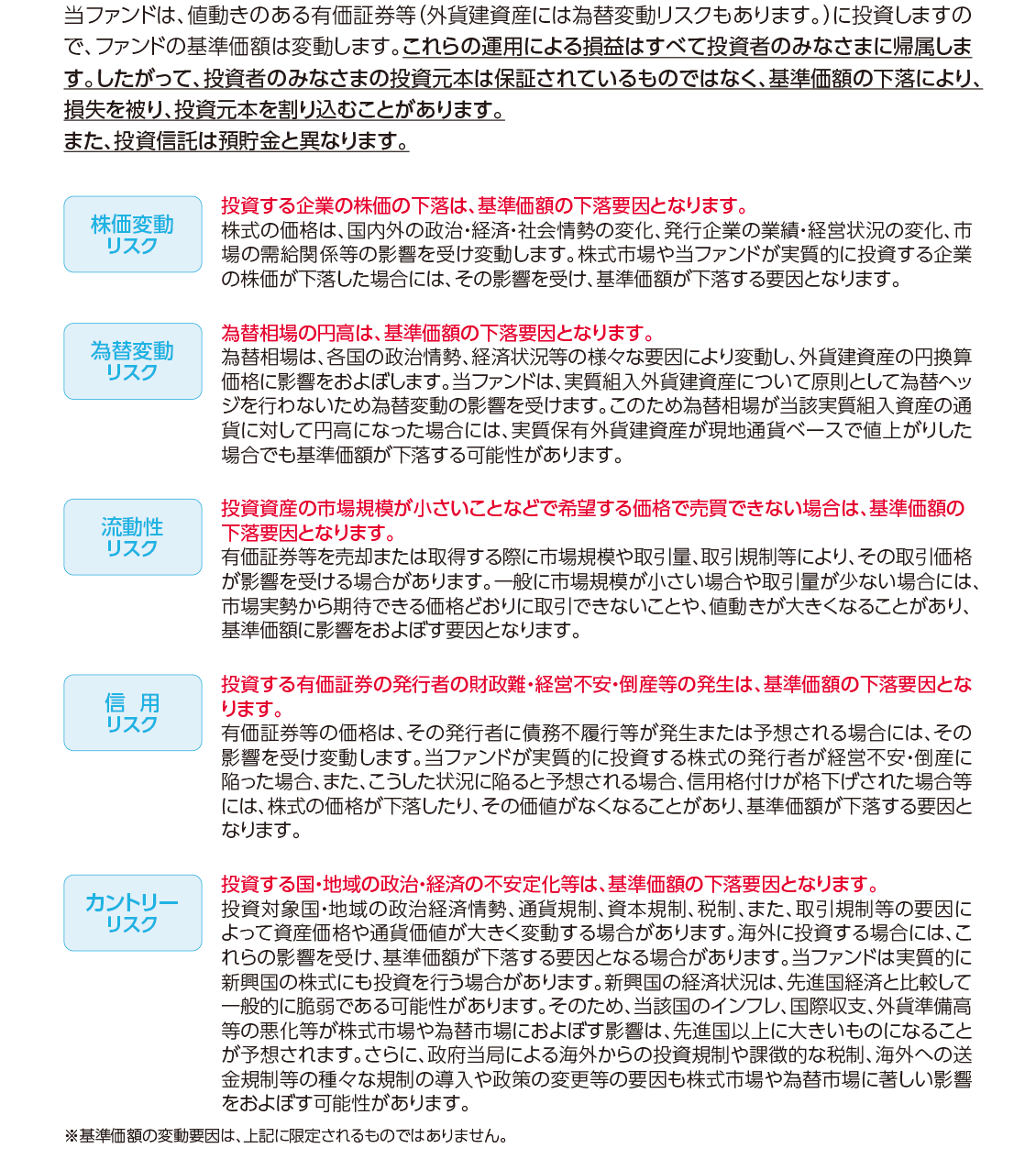 ファンド概要についての注意