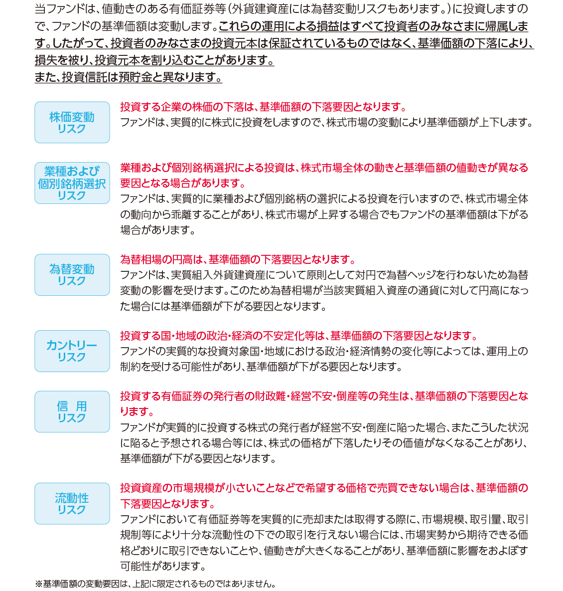 ファンド概要についての注意