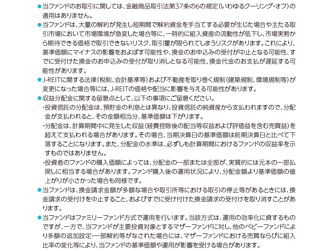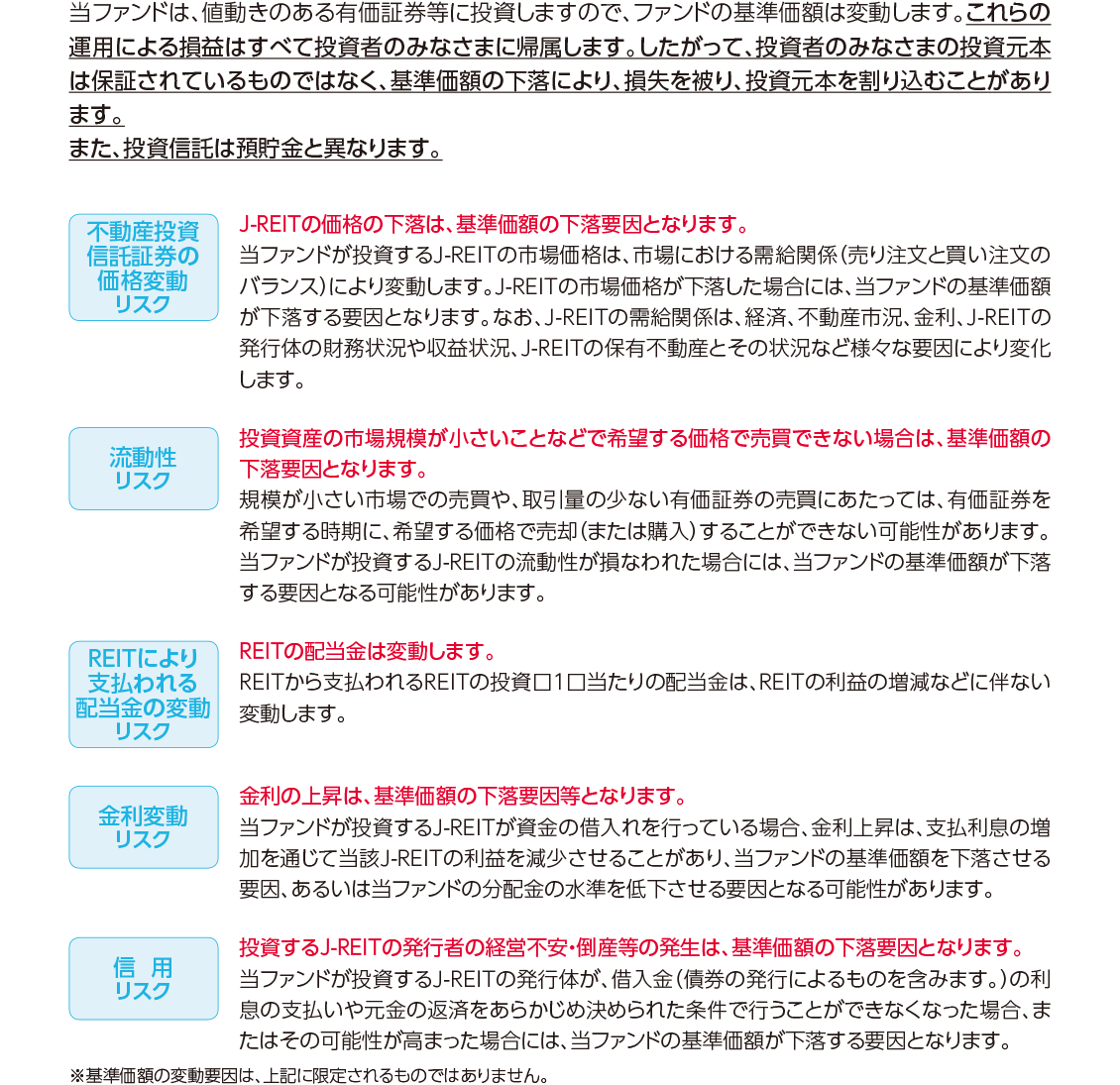 運用状況によっては、分配金額が変わる場合、あるいは分配金が支払われない場合があります。投資信託は、預金等や保険契約ではありません。また、預金保険機構および保険契約者保護機構の保護の対象ではありません。加えて証券会社を通して購入していない場合には投資者保護基金の対象にもなりません。購入金額については元本保証および利回り保証のいずれもありません。投資した資産の価値が減少して購入金額を下回る場合がありますが、これによる損失は購入者が負担することとなります。