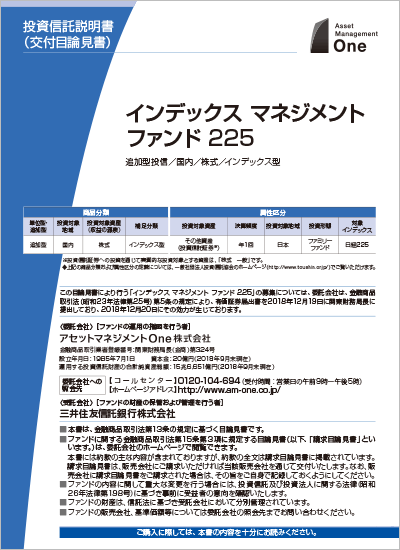 1.主としてインデックス マネジメント ファンド 225 マザーファンド(以下「マザーファンド」という場合があります。)を通じて、わが国の取引所に上場されている株式のうち日経平均トータルリターン・インデックスに採用された銘柄に投資を行います。