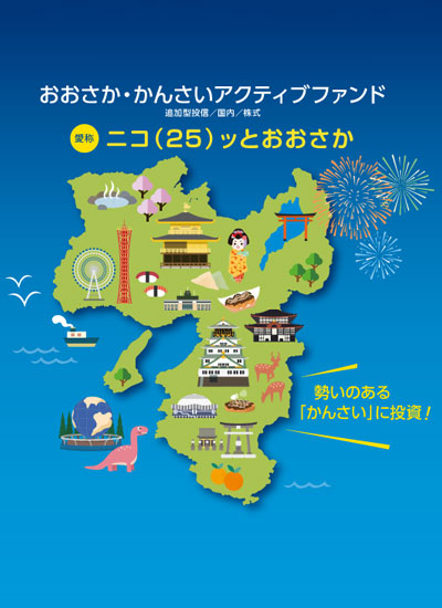 1. 主として、わが国の金融商品取引所に上場する株式(上場予定を含みます。)のうち、大阪府、京都府、兵庫県、滋賀県、奈良県、和歌山県のいずれかに本社を置く関西企業を中心に投資を行います。