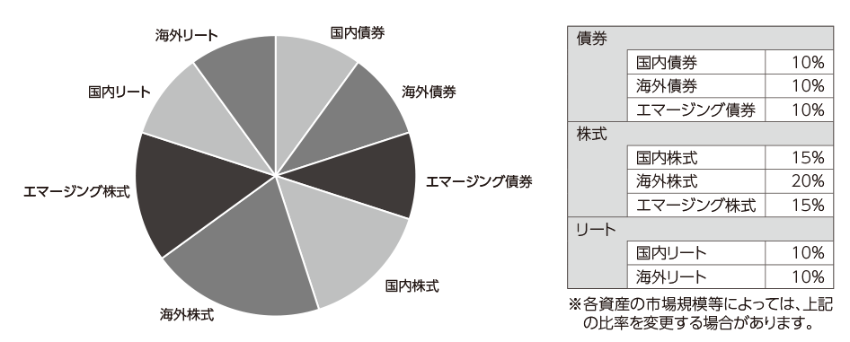 2.各資産(マザーファンド受益証券)への投資配分は、以下の比率を基本とし ます。